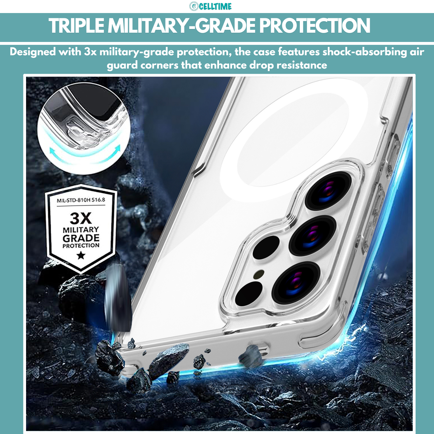 With its perfect blend of next-level protection, uncompromised clarity, and strong MagSafe compatibility, the CellTime MagCase for Galaxy S25/ S25 Plus/ S25 Ultra offers everything you need in a premium shockproof case. Protect your investment with a case that's tough, versatile, and built to last.