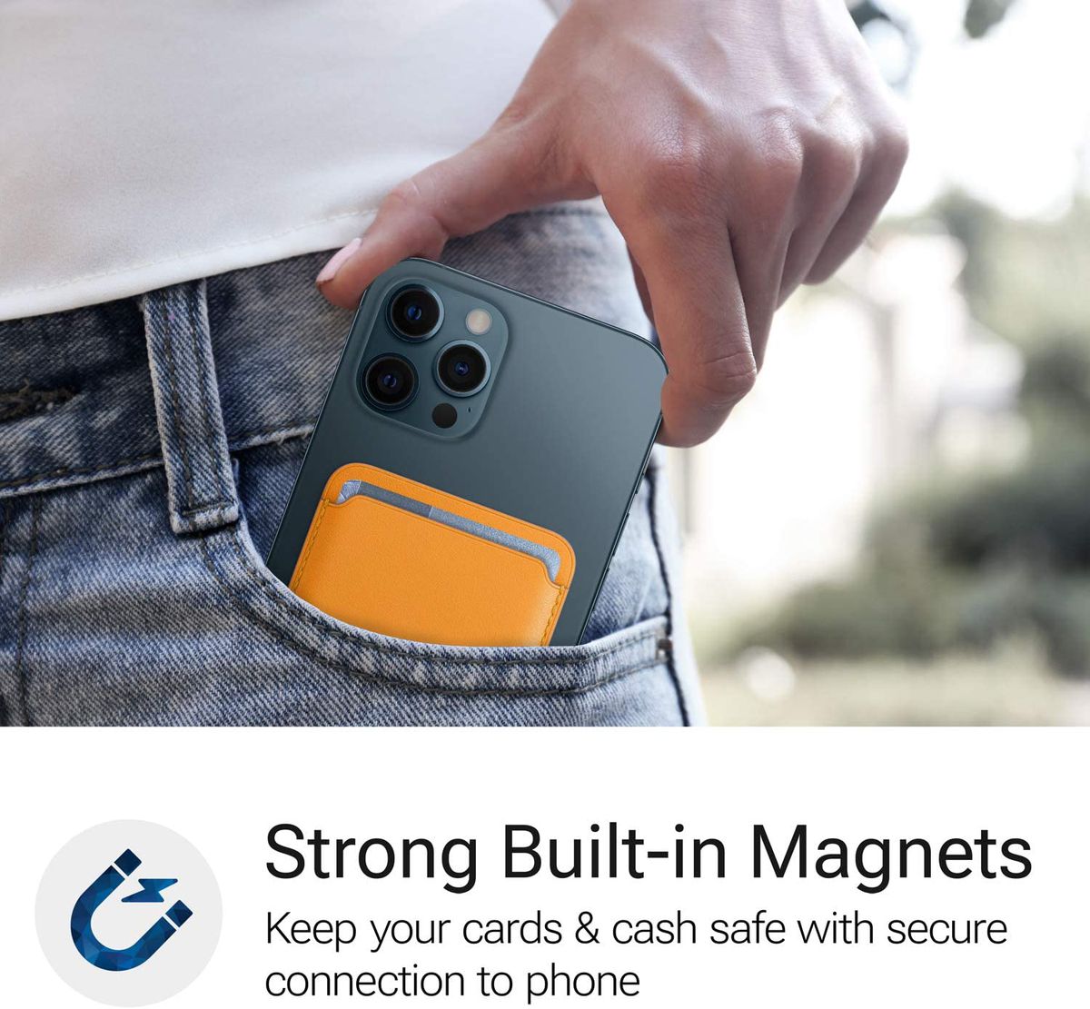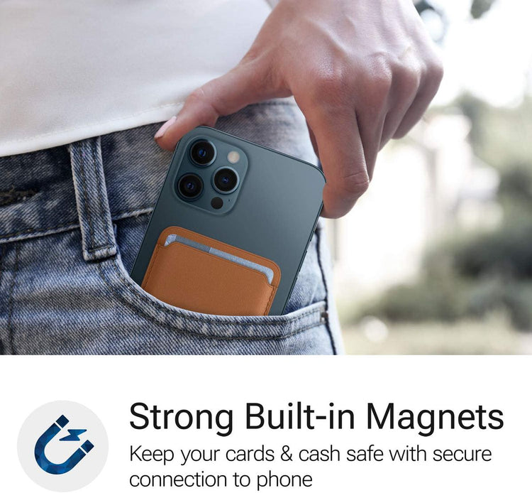 Strong Magnets - Strong built-in magnets effortlessly snap wallet into place on the back of iPhone keeping cards and cash secure.