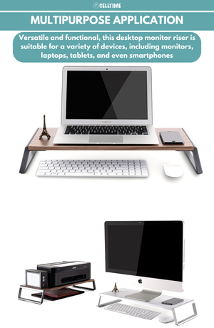 Multipurpose Application: Versatile and functional, this desktop monitor riser is suitable for a variety of devices, including monitors, laptops, tablets, and even smartphones. Whether you're working, gaming, or streaming your favourite content, this stand supports your devices securely and stylishly.
