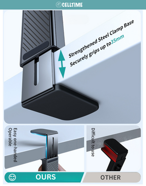 Durable Build: Hinge-inspired design and strengthened steel clamp base for lasting stability.