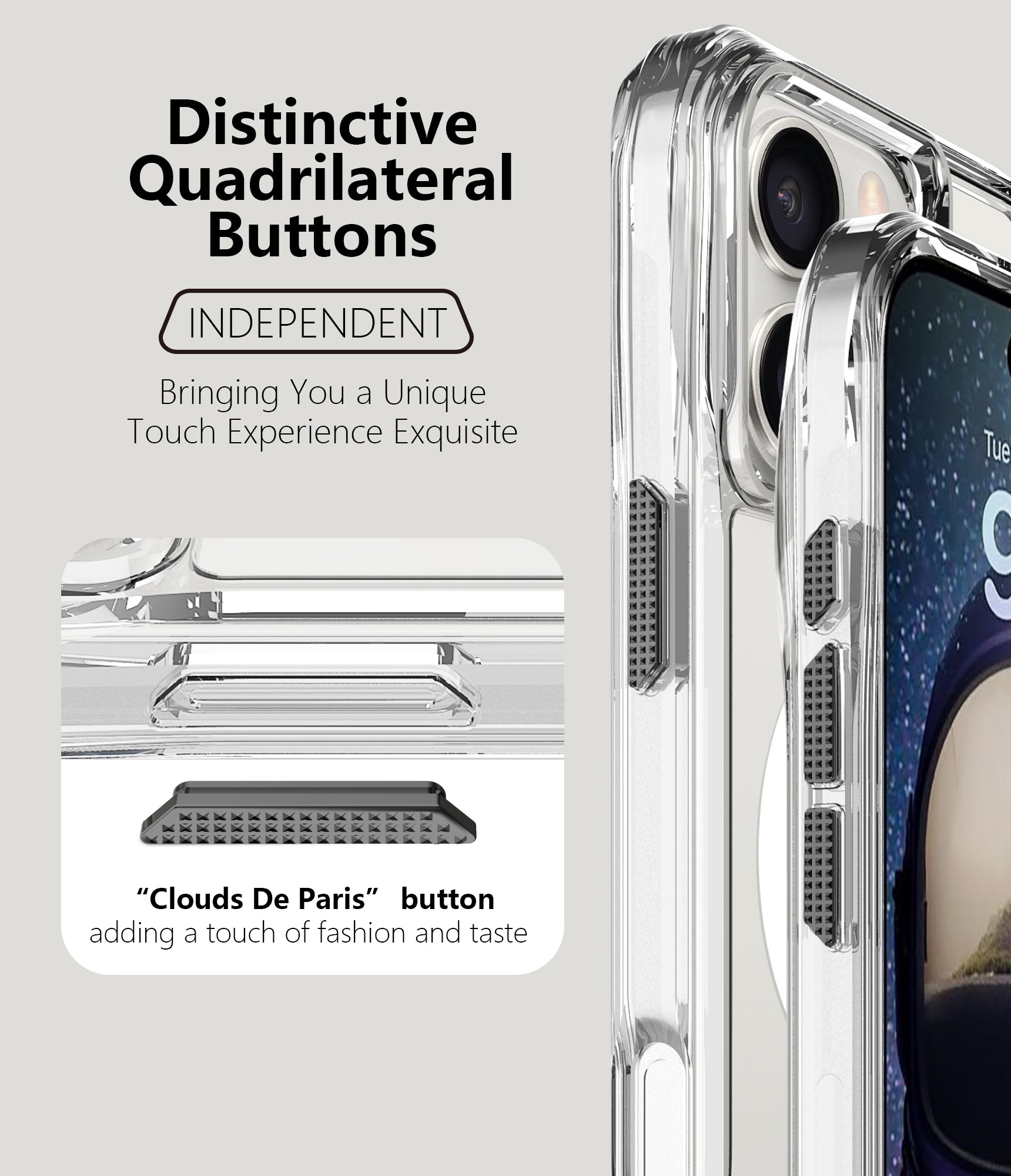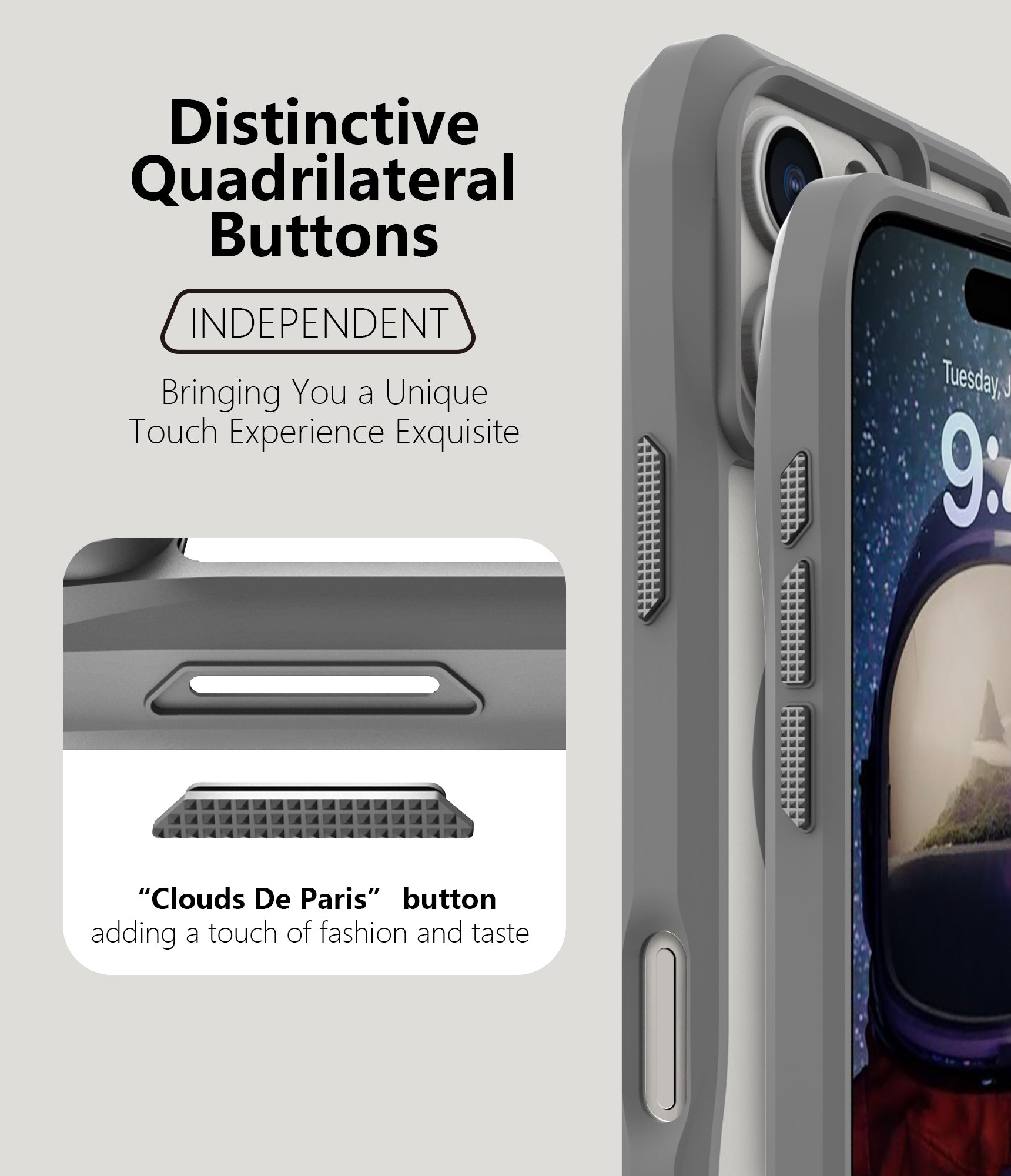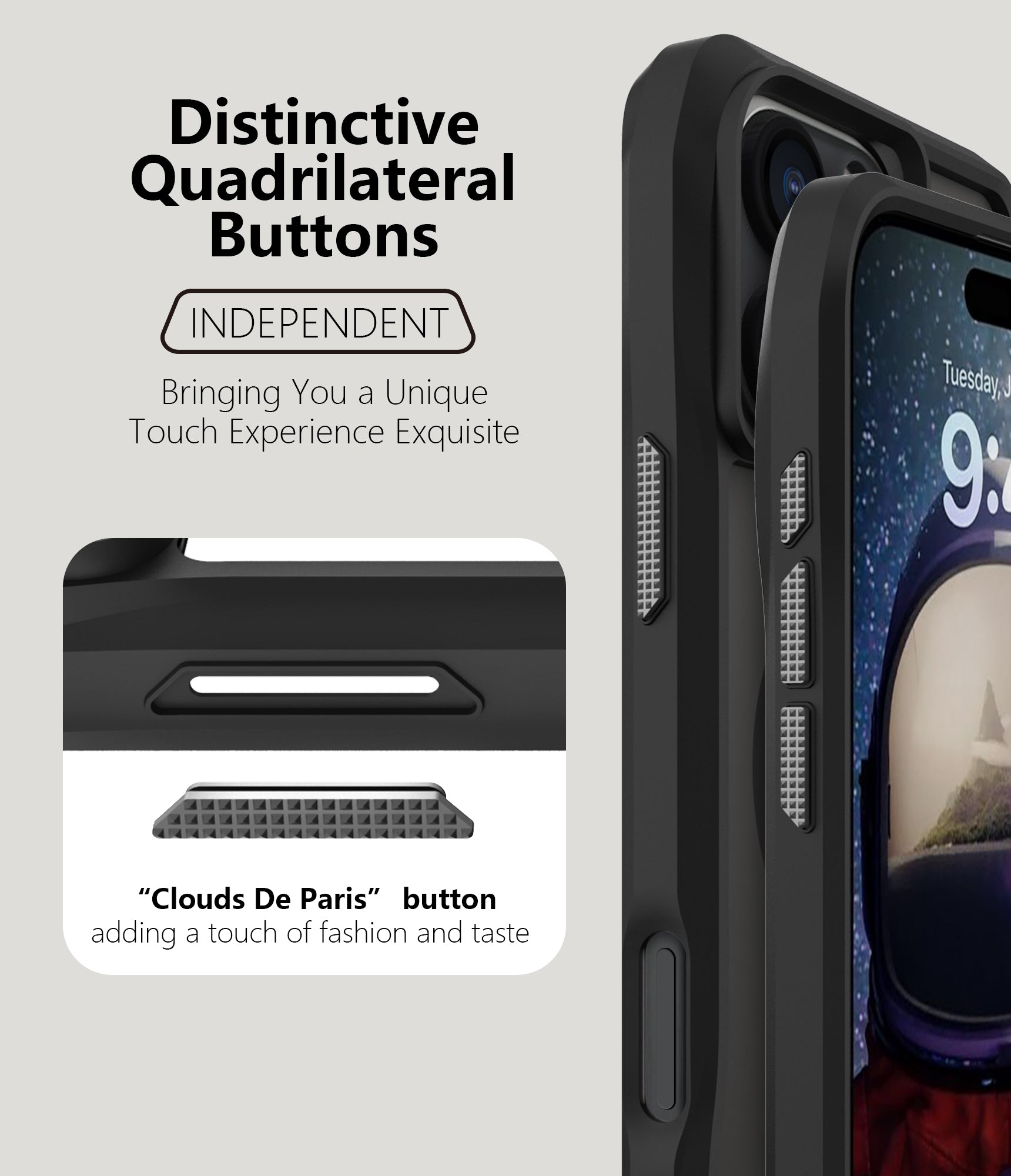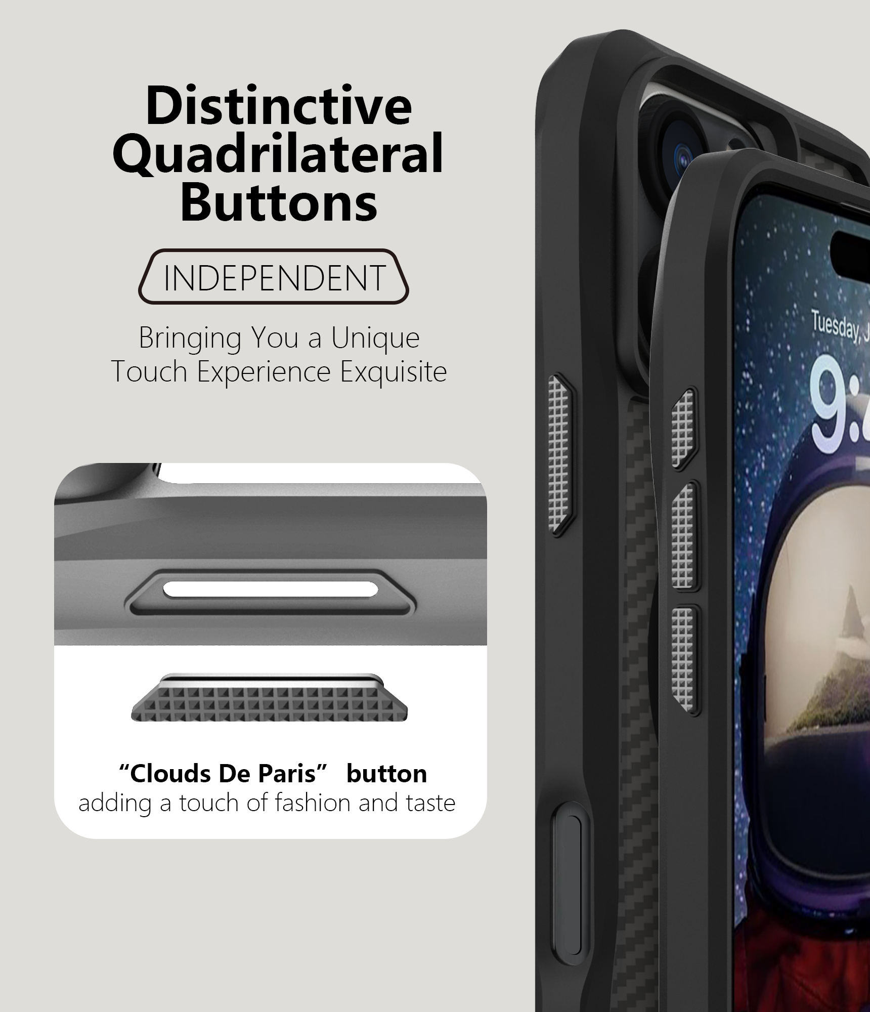 Distinctive Quadrilateral Buttons: Experience a tactile touch with the independent quadrilateral buttons. These buttons, designed with a unique shape, provide a satisfying click with every press. The stylish "Clous de Paris" button design adds an element of fashion and sophistication, giving your iPhone 16 Pro / 16 Pro Max a refined look.