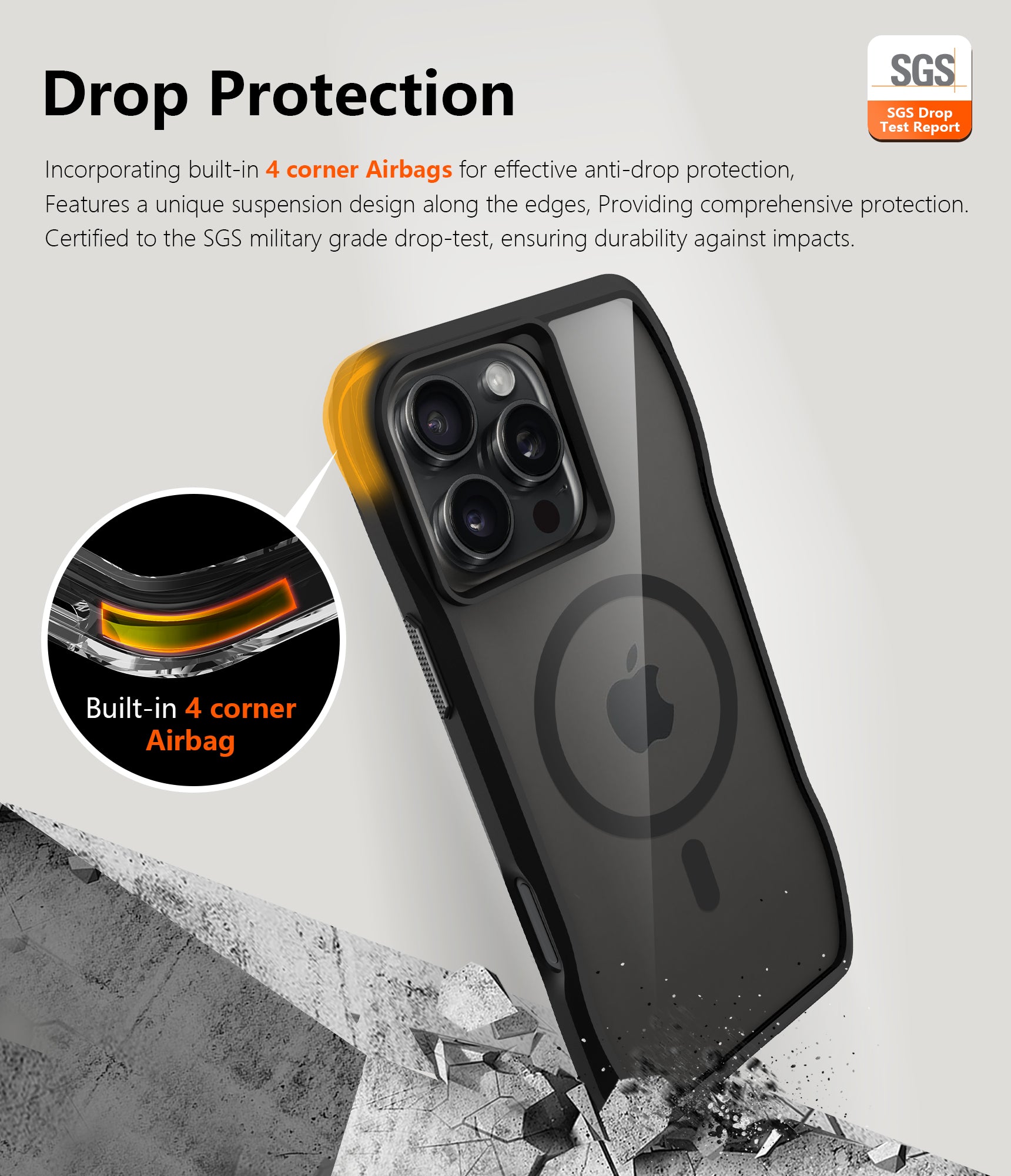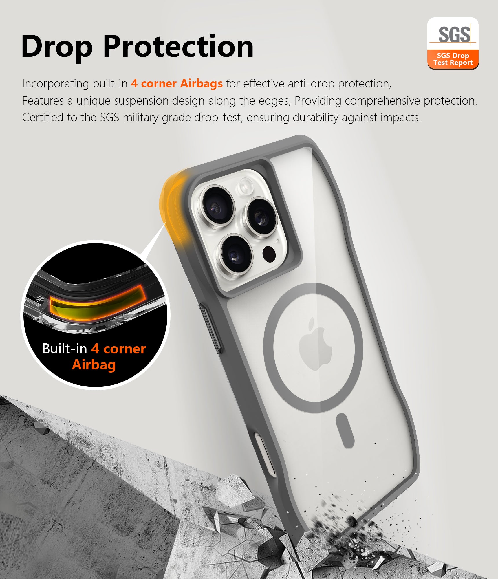 Military-Grade Drop Protection: Built to withstand the toughest conditions, the Octagon MagSafe Cover incorporates 4 corner airbags and a unique suspension design along the edges for enhanced anti-drop protection. Certified to pass the SGS Military-Grade Drop Test, this case ensures your iPhone is protected from impacts and drops, giving you peace of mind during everyday use.