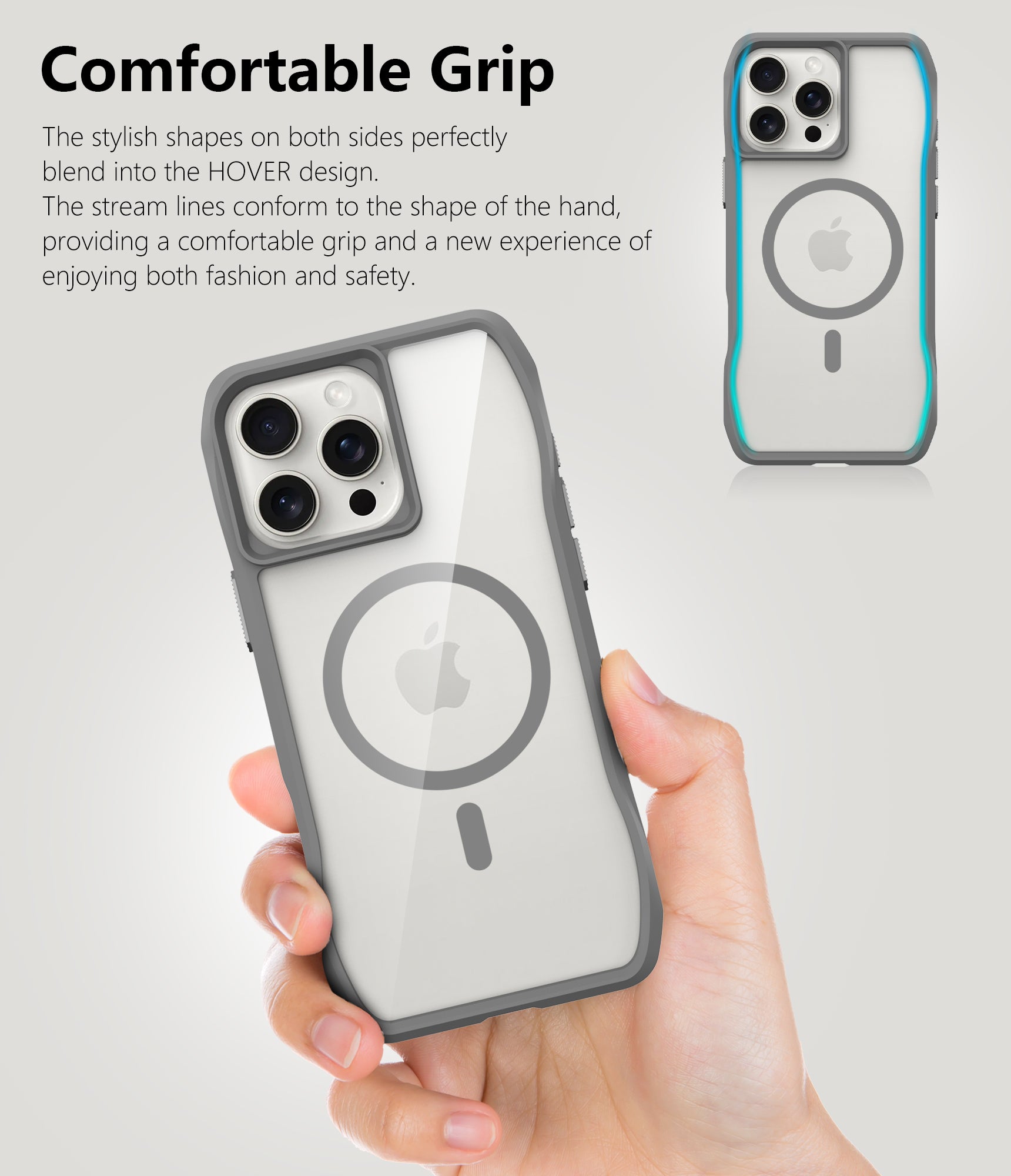 Comfortable Grip with Hover Design: The stylish shapes on both sides of the case blend into the Hover design, offering a streamlined grip that conforms to the hand. This provides a new experience of comfort, combining fashion with the safety of a secure hold.