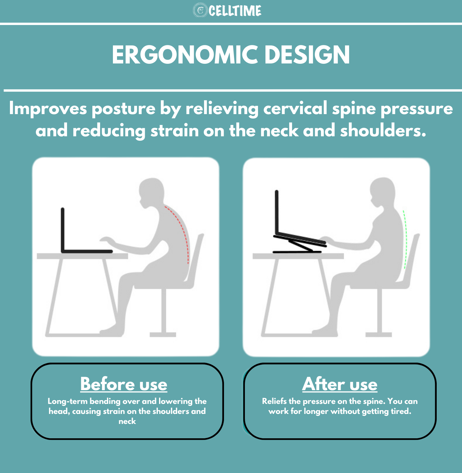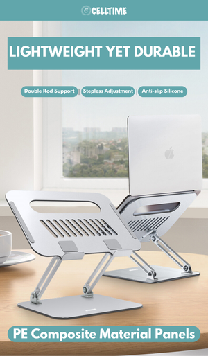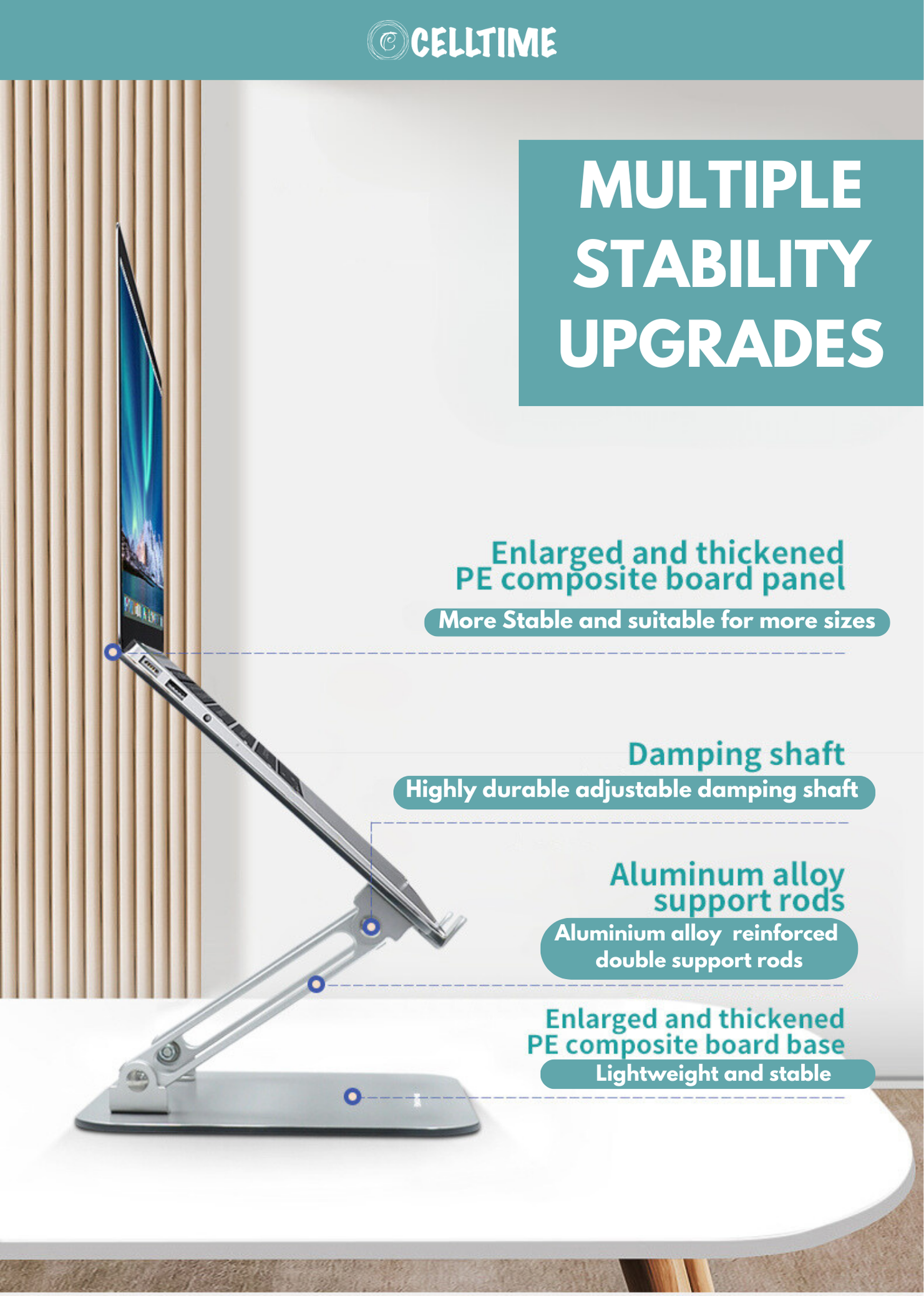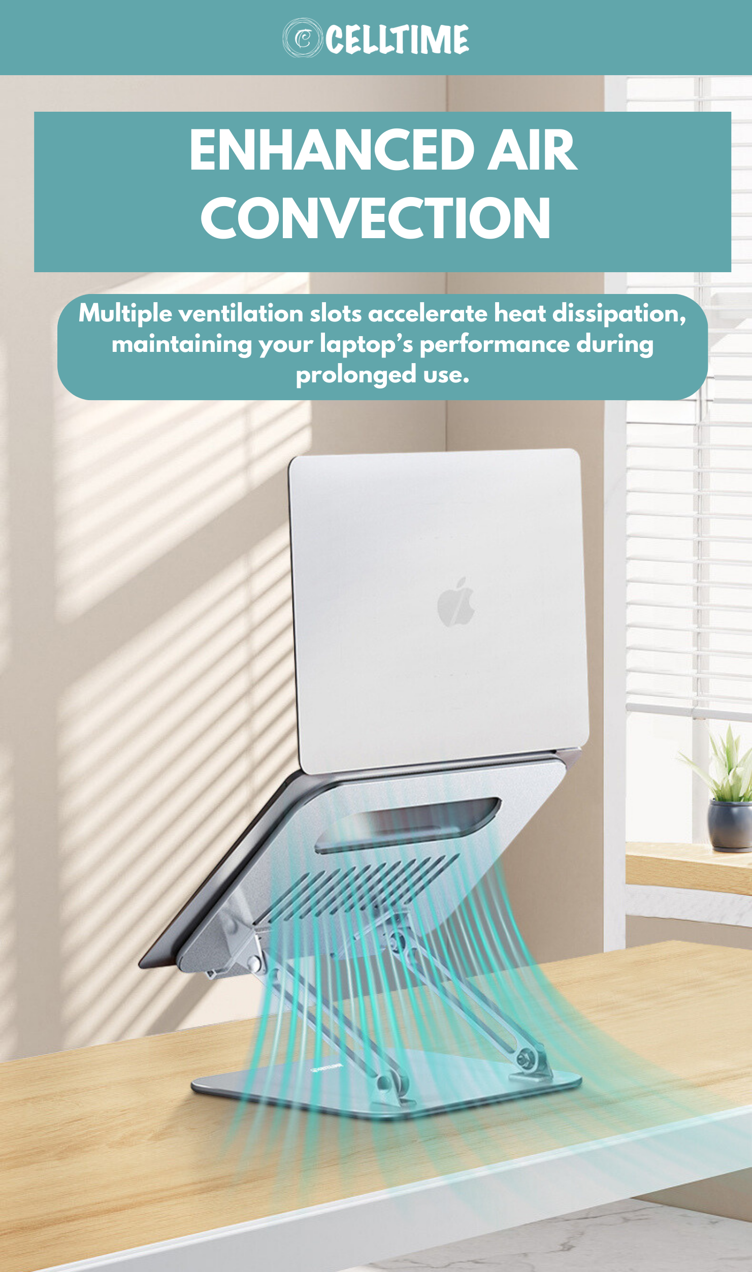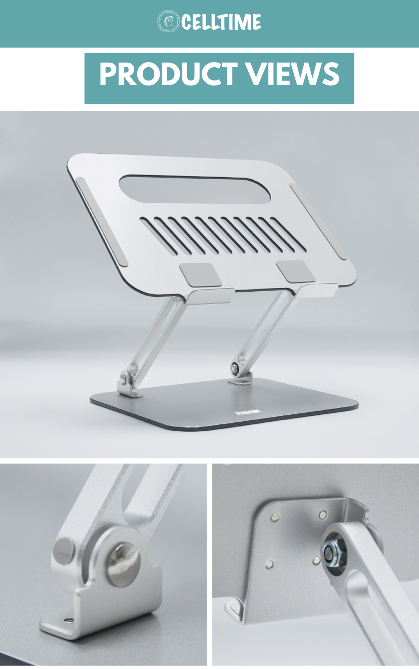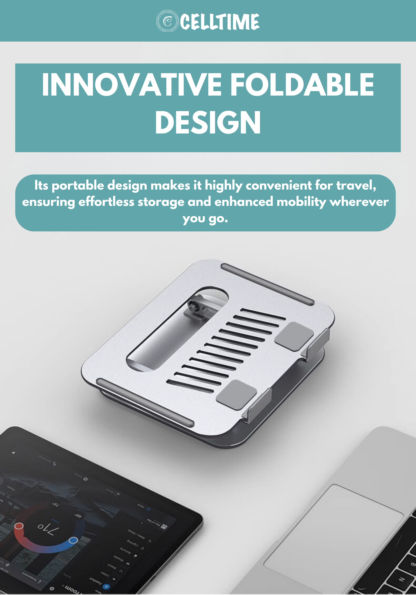 Upgrade your workspace with the CellTime Portable Foldable Ergonomic Adjustable Aluminium Laptop Stand (QS2) and experience the perfect blend of stability, functionality, and modern design.