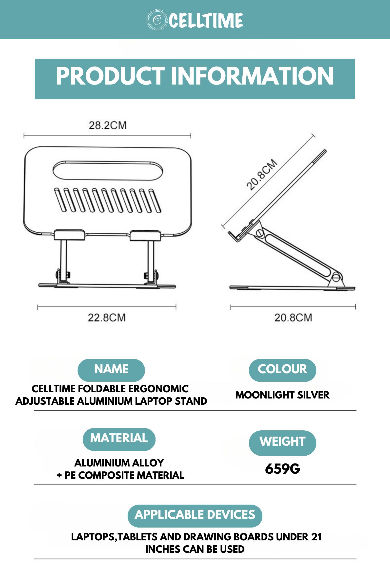 CellTime Portable Foldable Ergonomic Adjustable Aluminium Laptop Stand