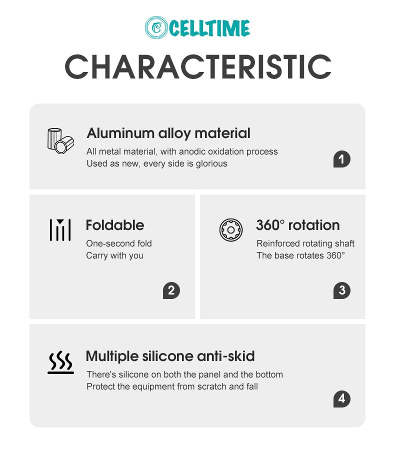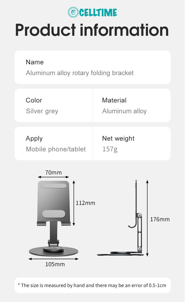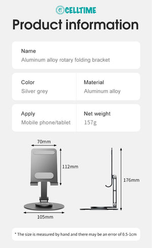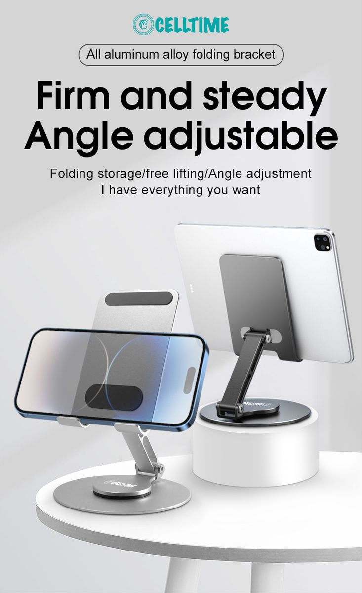 Key Features of the CellTime RotateMini Ergonomic Foldable Rotatable Smart Phone / Tablet Stand: