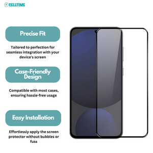 Case-Friendly Design: Compatible with most cases, the CellTime protector ensures full protection without compromising your preferred case's fit or style. The precise cutouts and dimensions allow for easy installation alongside your favourite case, offering comprehensive protection for your Galaxy S25 / S25 Plus.
