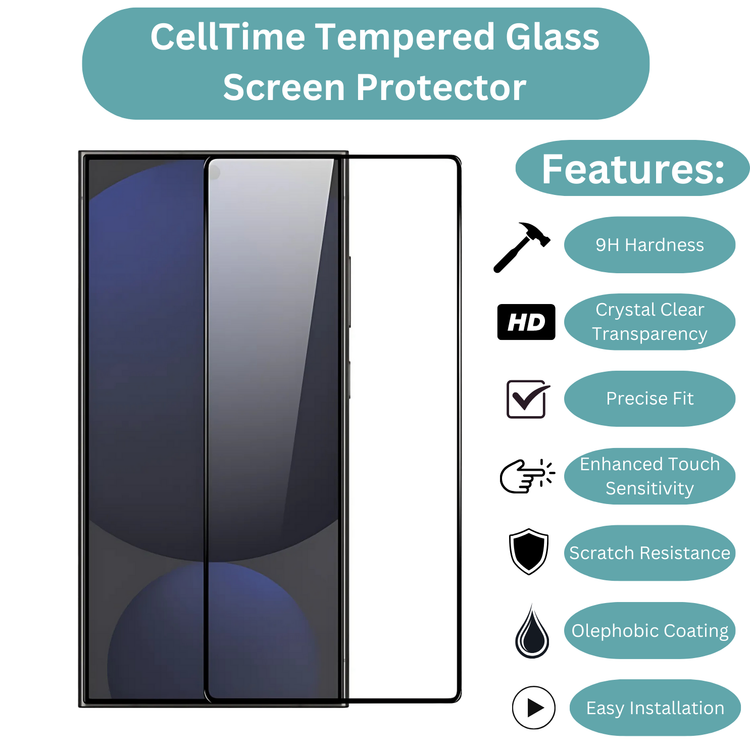 Elevate your cellphones protection to new heights with the CellTime Tempered Glass Screen Protector for Galaxy S25 Ultra. Crafted with precision and innovation, this screen protector is your device's shield, ensuring its display remains pristine and unblemished through every swipe and tap.