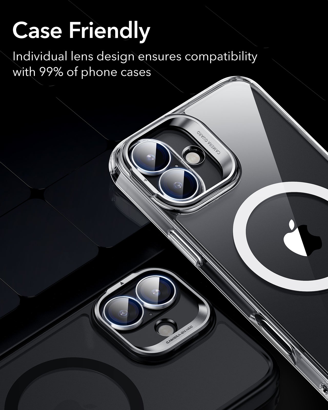 Case-Friendly Individual Lens Design: The individual lens cover design is tailored to ensure compatibility with 99% of phone cases, so you can use these protectors with nearly any case style. This individual layout not only offers excellent protection but also maintains a sleek, unobtrusive profile that integrates perfectly with your phone's original look.