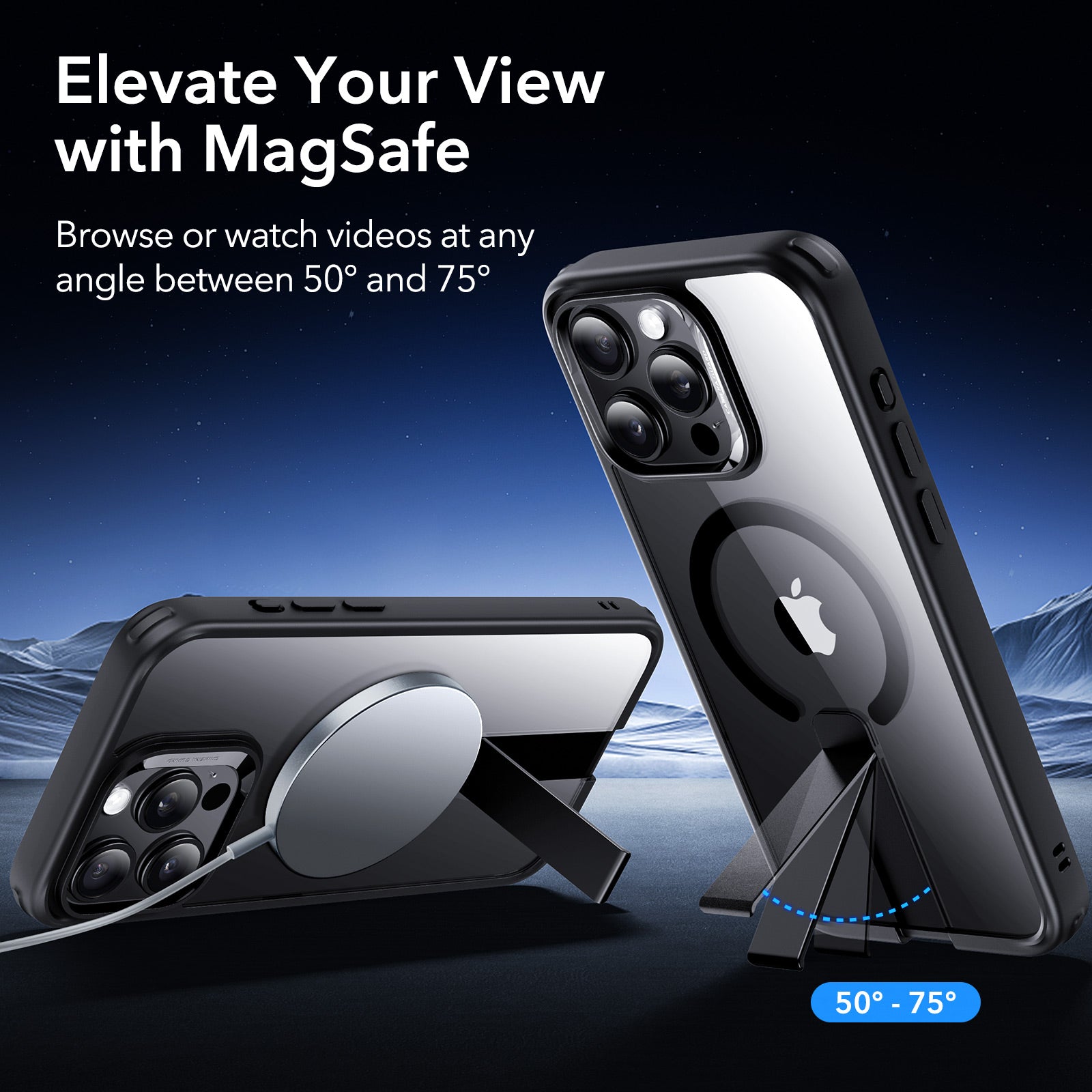 Make the most of MagSafe with flickstand: Elevate your charging and viewing experience with our innovative flickstand. Enjoy two stable stand positions in portrait or landscape while you charge, unlocking a world of convenience and versatility.