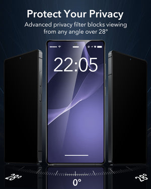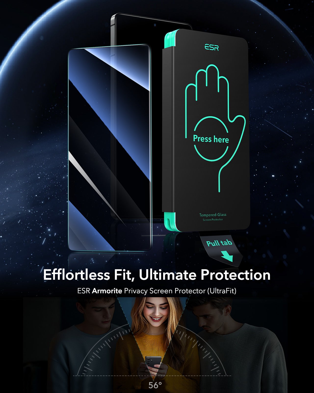 The ESR Privacy Tempered Glass Screen Protector (UltraFit) offers unmatched security for your Samsung Galaxy S25 Ultra by combining military-grade impact resistance with a privacy filter that keeps your screen content private. Its effortless installation, scratch resistance, and ultra-clear touch sensitivity make it an essential companion for protecting both your device and your personal information.