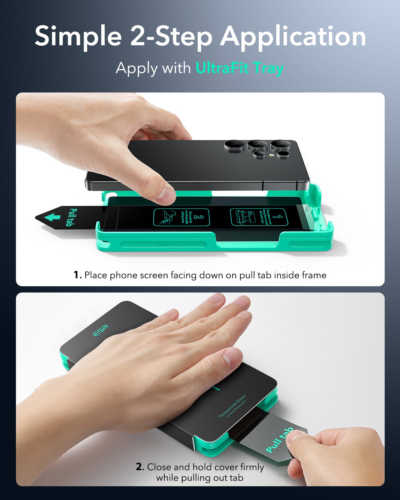 Applying the screen protector is effortless with the included UltraFit fitment tray, ensuring perfect alignment in just two steps: