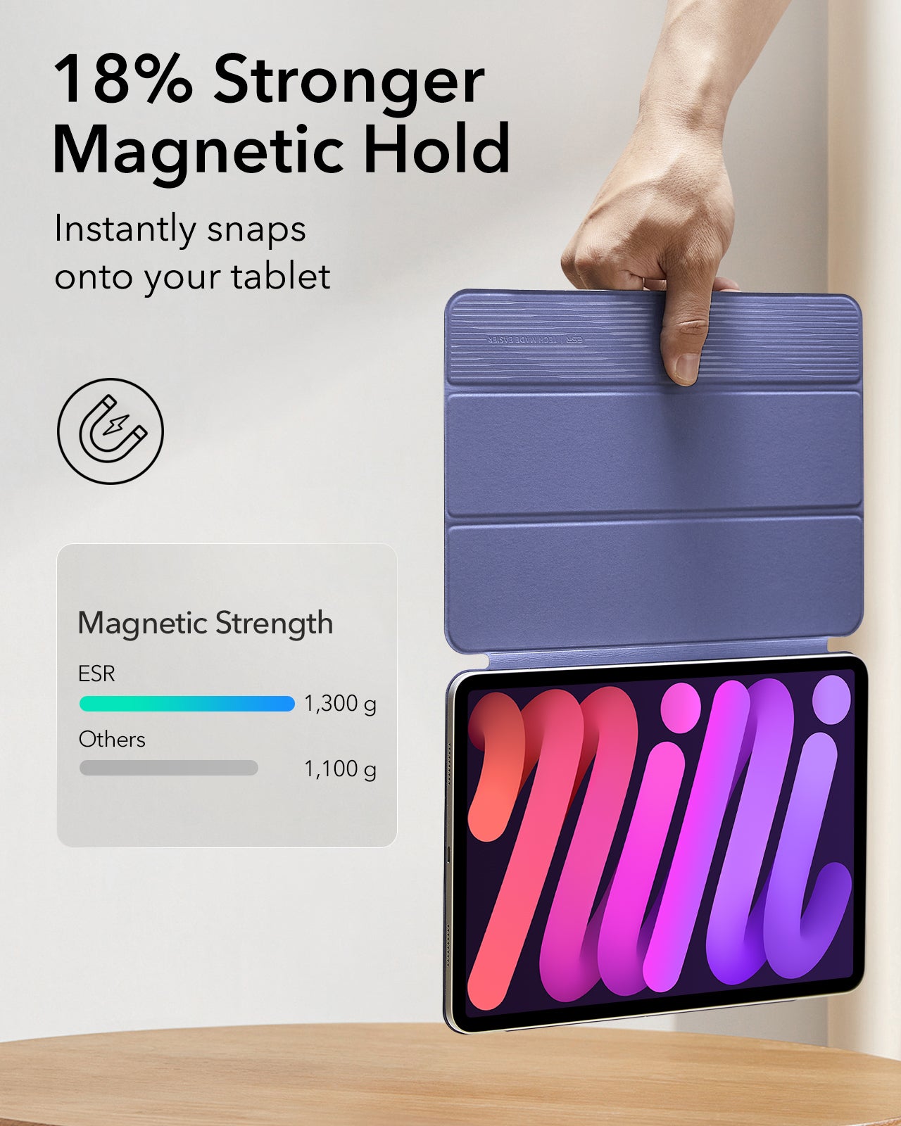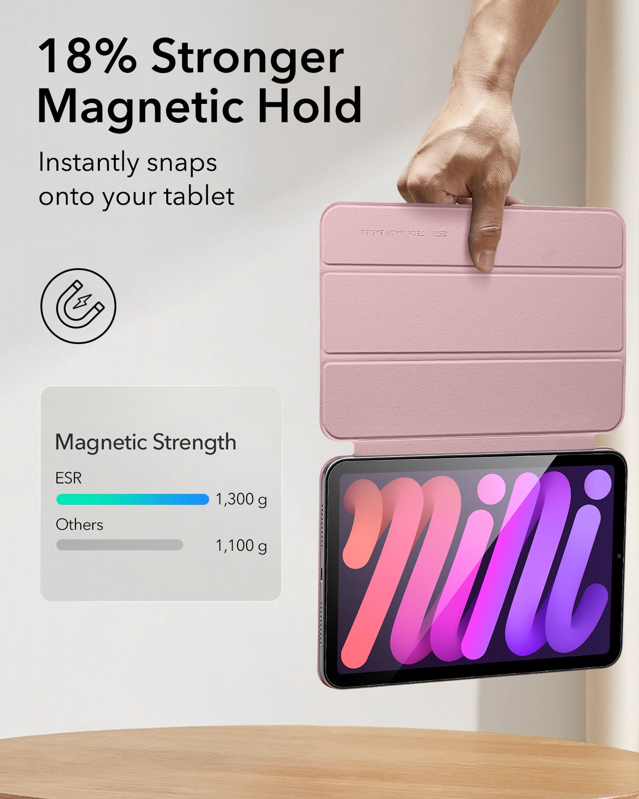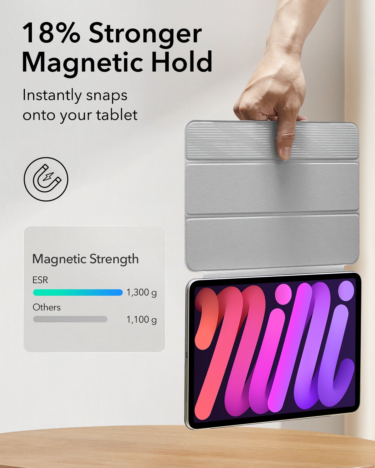Built to Last: Quality meets durability in this iPad Mini 7 (A17 Pro) / iPad Mini 6 case that's built to withstand the challenges of everyday life. Constructed with premium materials and rigorously tested to endure 100N of force, the ESR Rebound Magnetic Case provides long-lasting protection and performance.