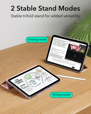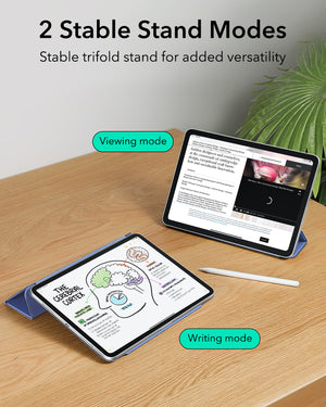 2 Stable Stand Modes for Versatile Use: Get the perfect viewing angle with the stable tri-fold stand, offering two distinct modes. Viewing mode provides a comfortable hands-free setup for watching movies or making video calls, while writing mode offers a low-angle position for typing or drawing. The reinforced fold lines ensure that both positions are sturdy and secure, keeping your tablet perfectly in place.