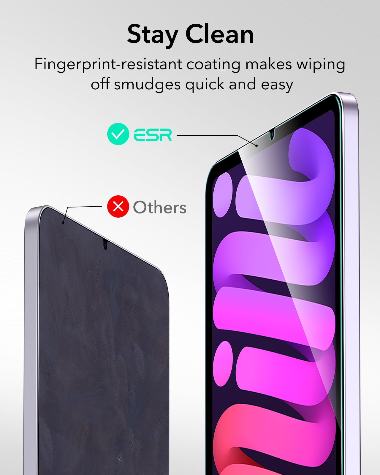 Fingerprint and Smudge Resistant: Keep your iPad Mini 7 (A17 Pro) / iPad Mini 6 screen clean and clear with a fingerprint-resistant coating that makes wiping off smudges quick and effortless. Maintain a fresh, polished look with minimal maintenance.