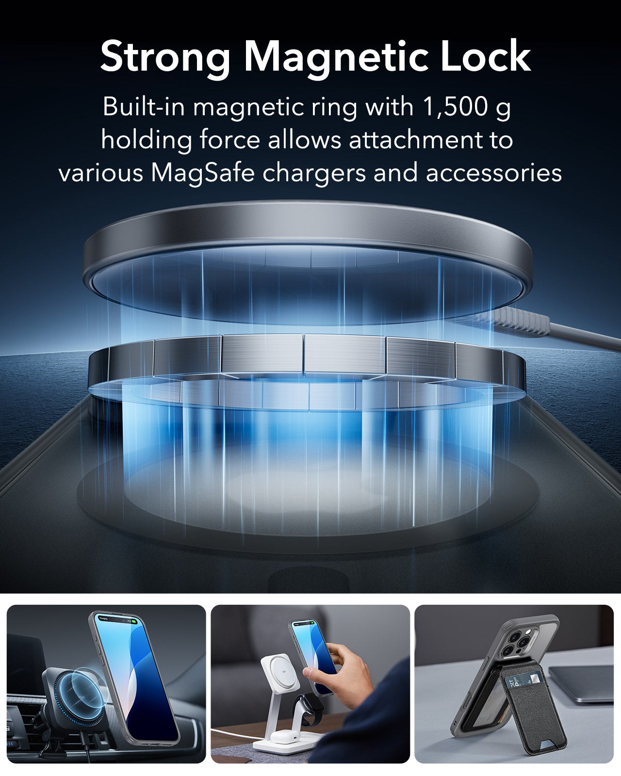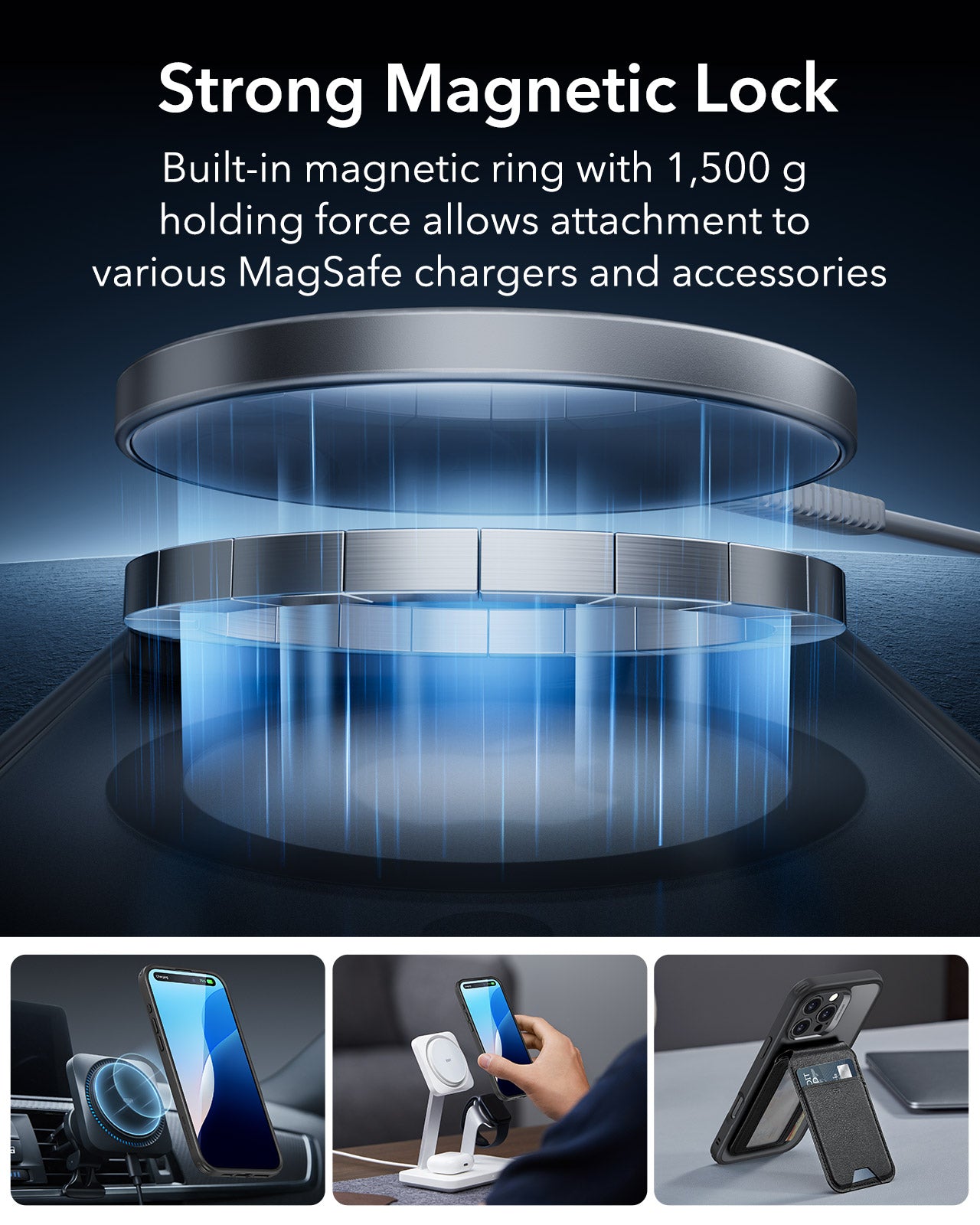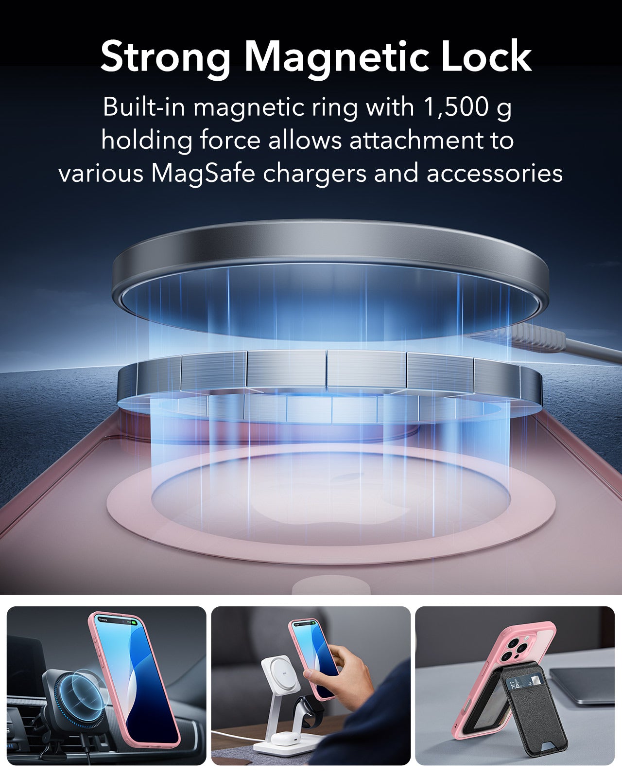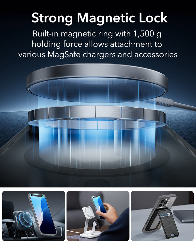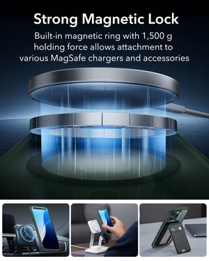 Strong Magnetic Lock - MagSafe Compatible: This case is equipped with a built-in magnetic ring that delivers a 1500g holding force, ensuring a secure connection to all MagSafe chargers and accessories. Enjoy the convenience of fast, reliable charging and seamless accessory attachment.