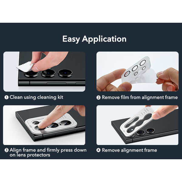 Elevate your Galaxy S24 Ultra experience with the ESR Tempered Glass Screen & Camera Lens Protectors Set - where protection meets perfection, every time. Protect your device with confidence and enjoy unparalleled clarity and functionality with our premium protectors.
