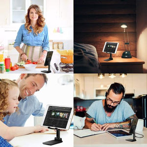 Designed with user convenience in mind, this phone stand is not only adjustable but also foldable and portable. Its compact and lightweight design allows for easy storage in your backpack or pocket, making it an ideal companion for various activities such as watching videos, reading, studying, playing games, making video calls, and attending video conferences. It's the perfect travel companion, always ready to enhance your multimedia experience on the go.