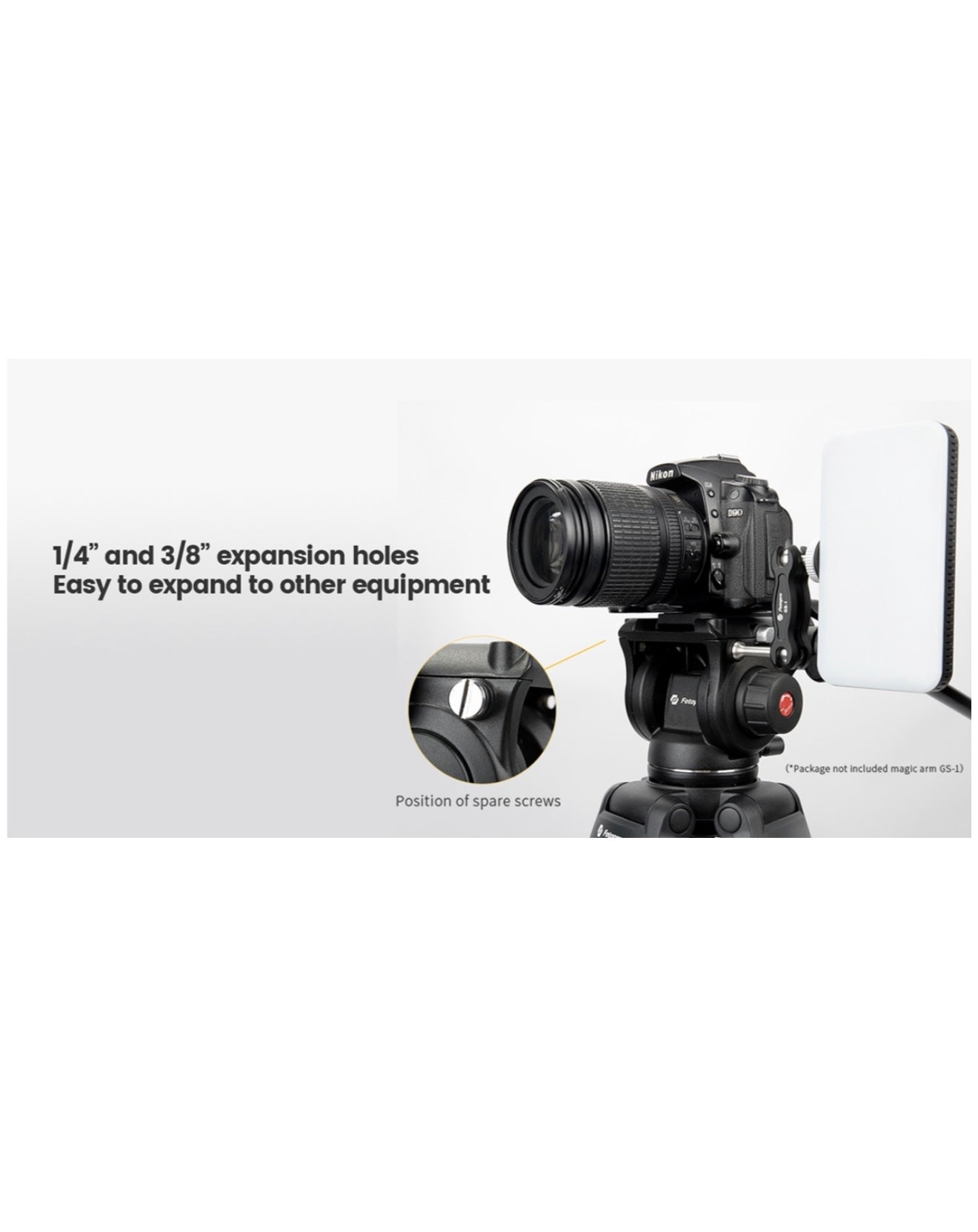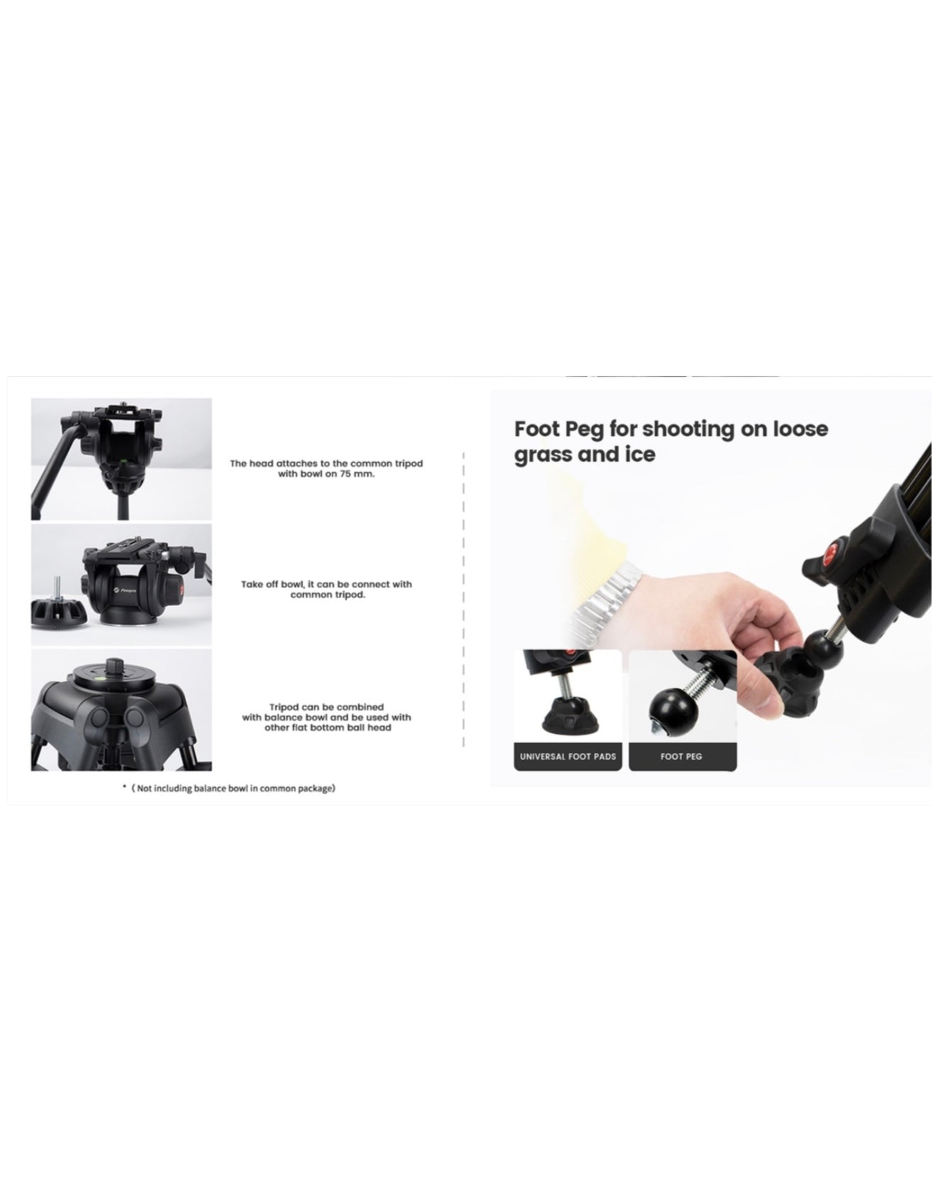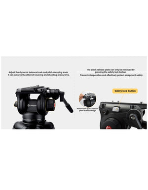 Precision Fluid Head with 360 Rotation: Enjoy ultra-smooth 360 horizontal panning and a tilt range of +90 to -75 for versatile shooting angles. The fluid head's damping and balance adjustments ensure consistent performance across all movements.