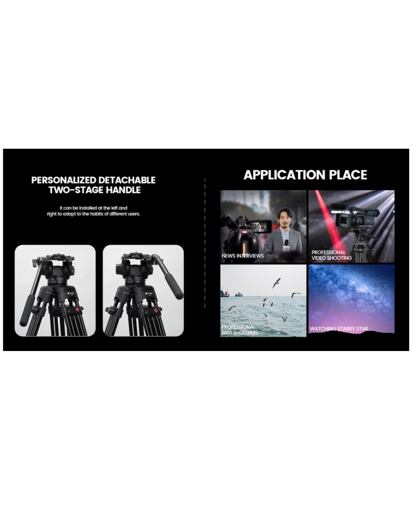 Professional Versatility: Perfect for news interviews, professional video shoots, wildlife filming, birdwatching, and stargazing, this tripod adapts to multiple scenarios without compromising stability.