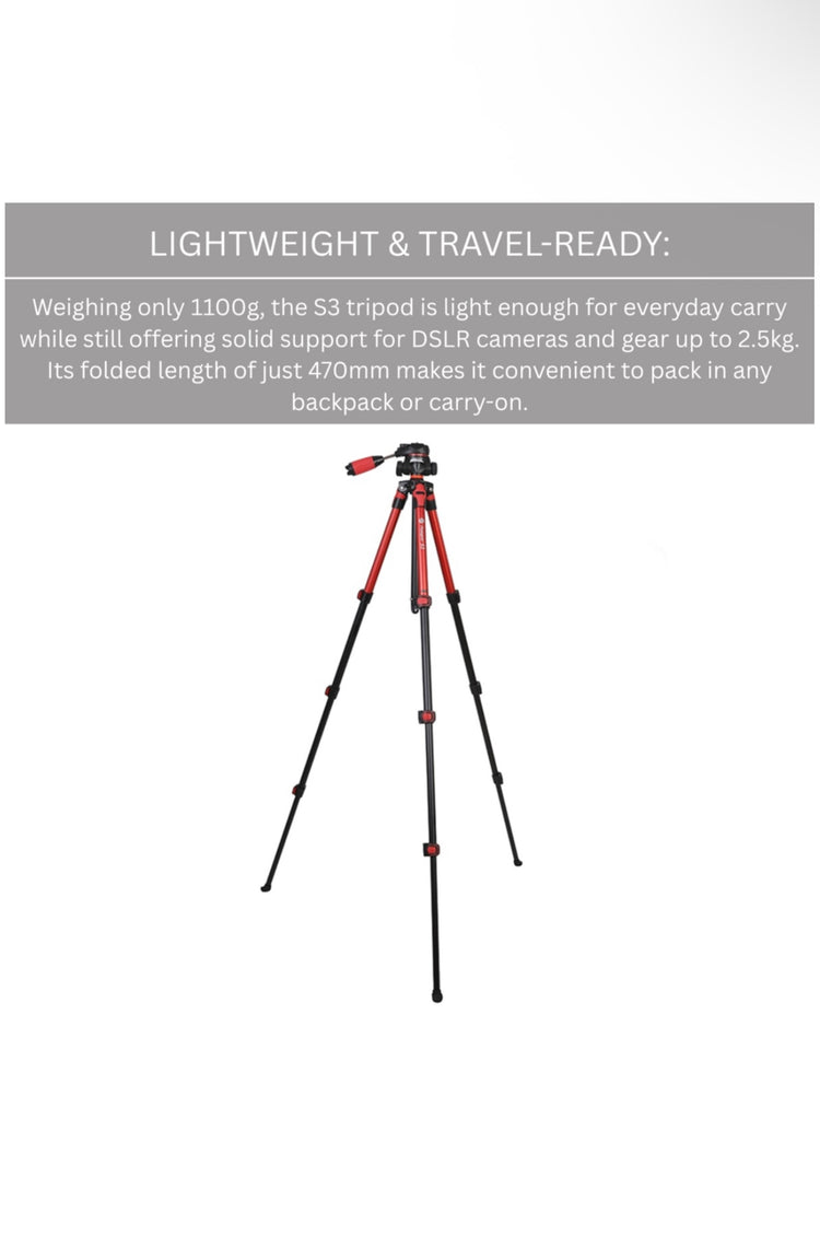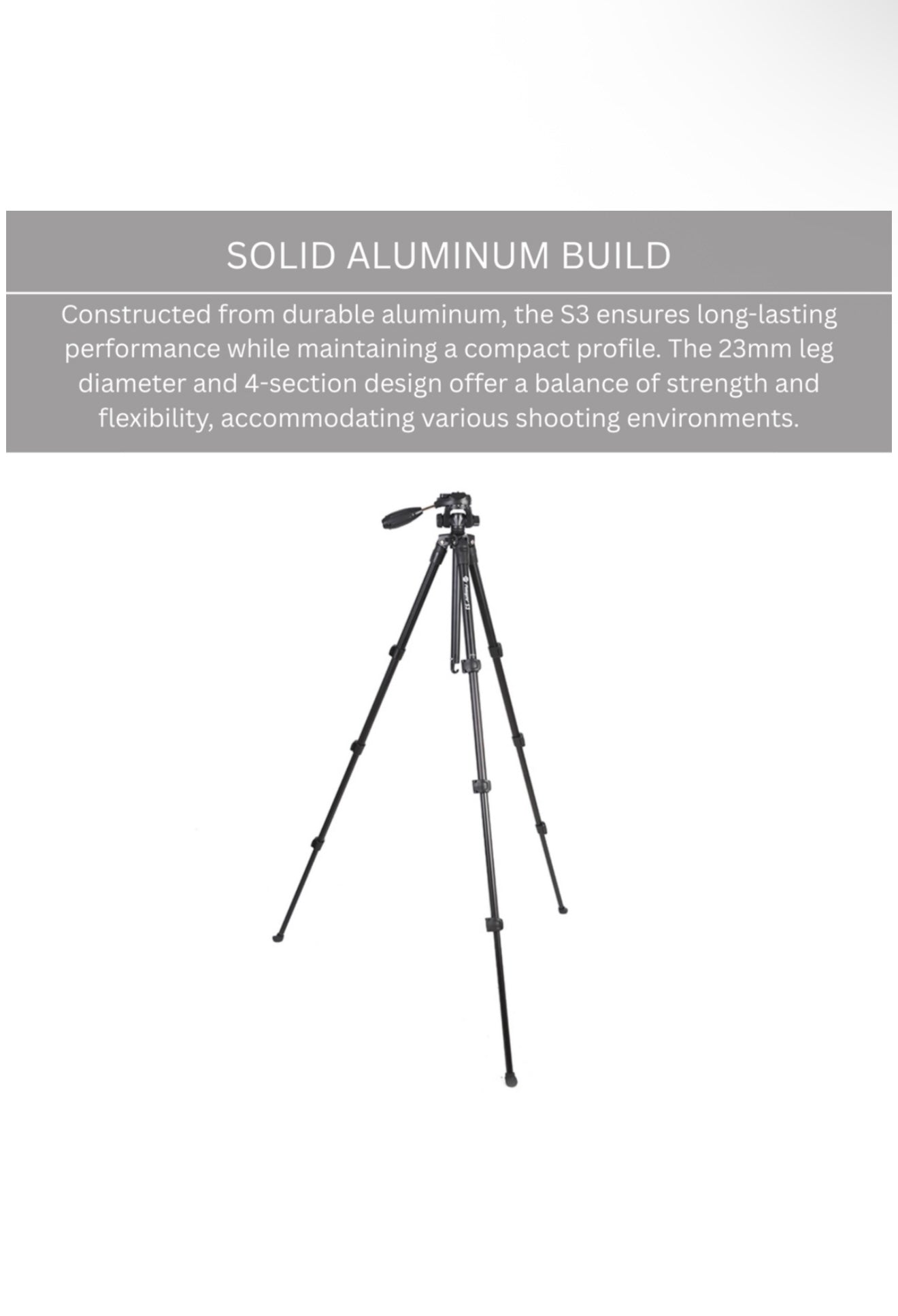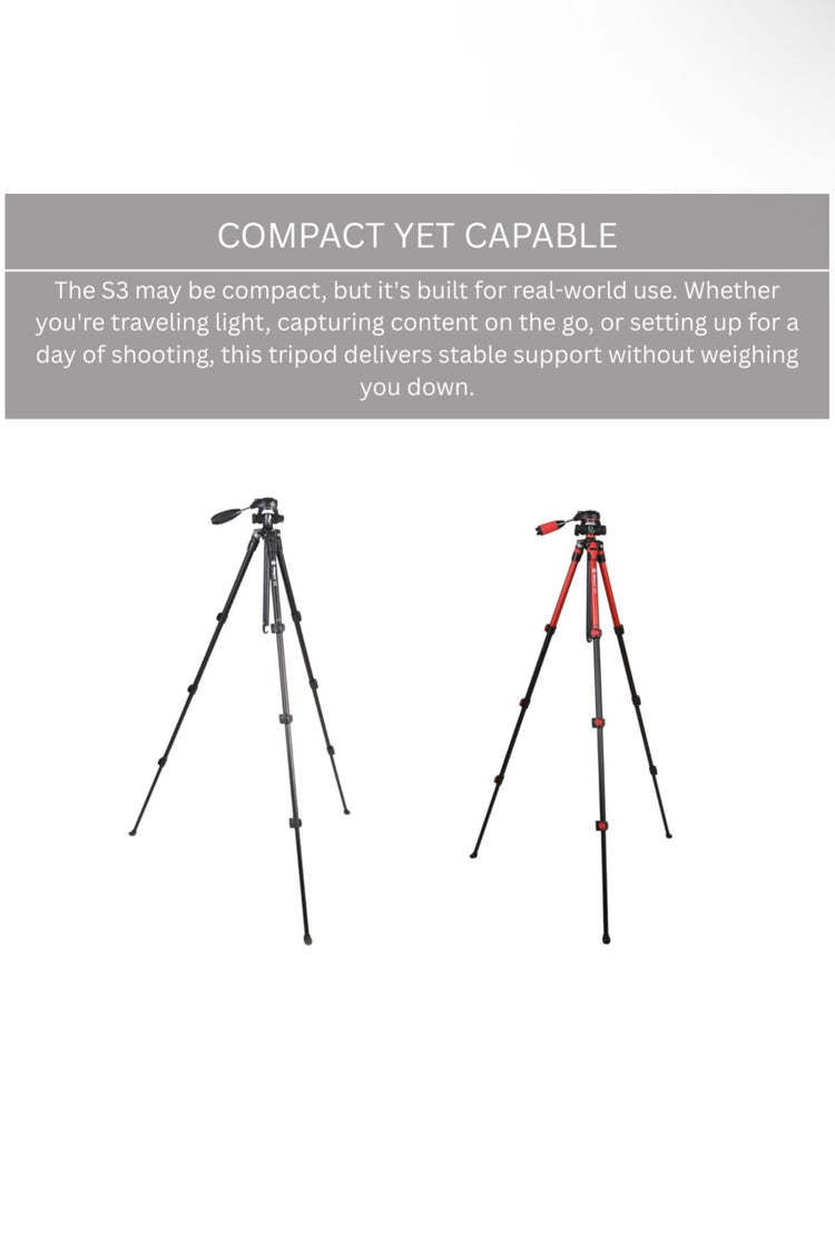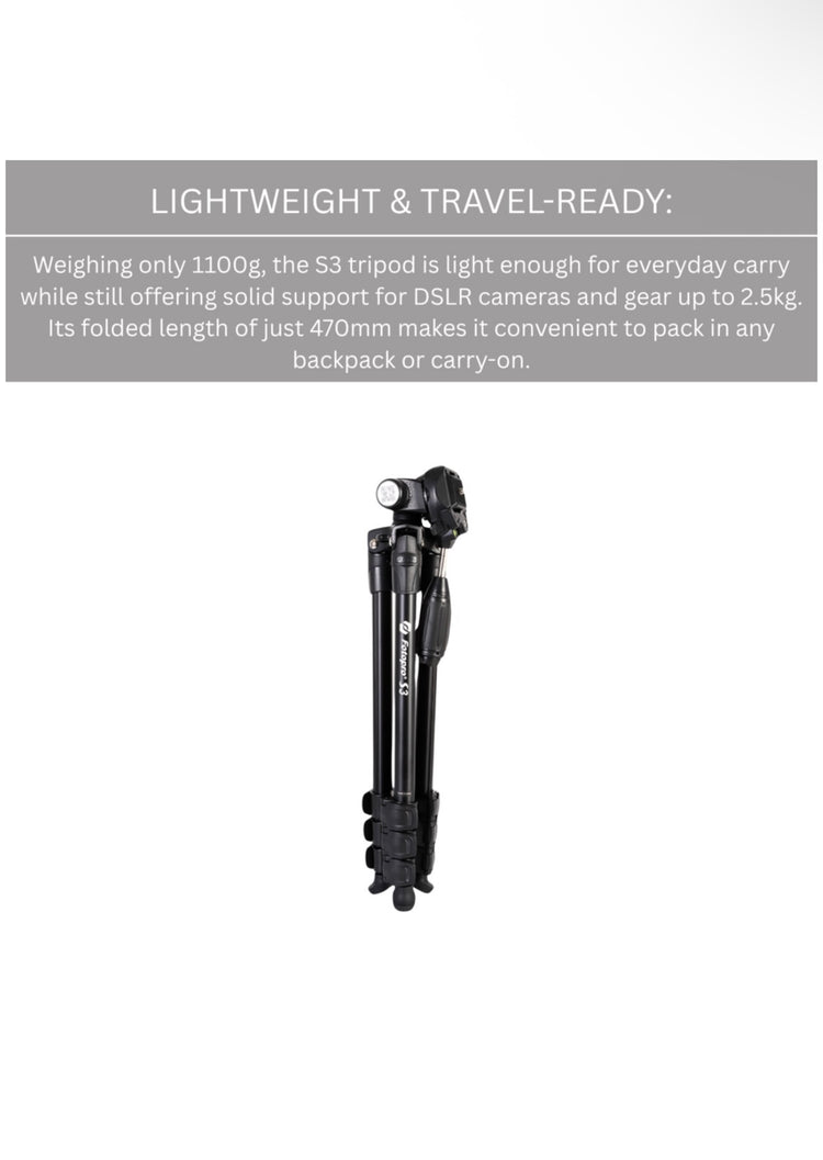 Whether you're capturing everyday moments or exploring scenic landscapes, the S3 Series Tripod offers lightweight reliability in a compact, DSLR-friendly package.