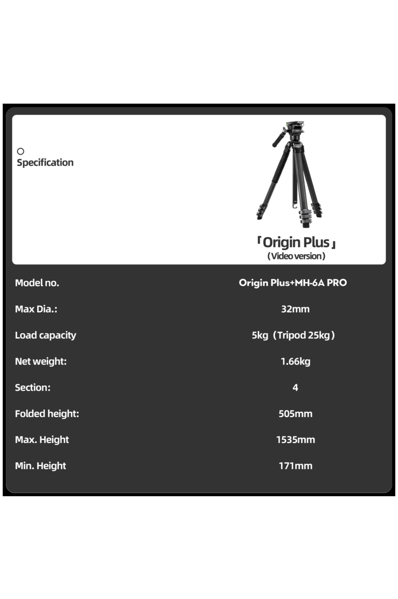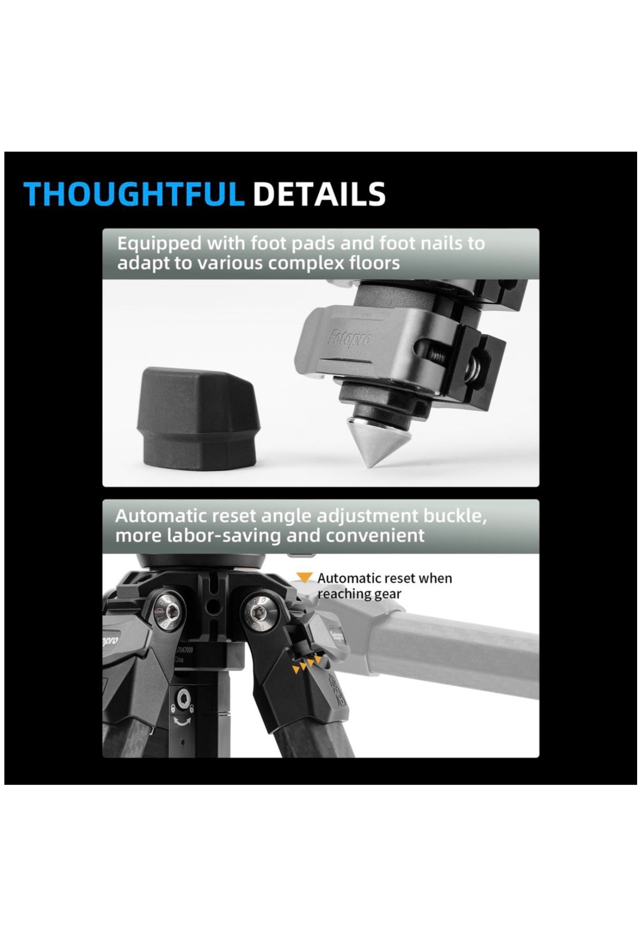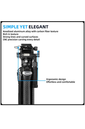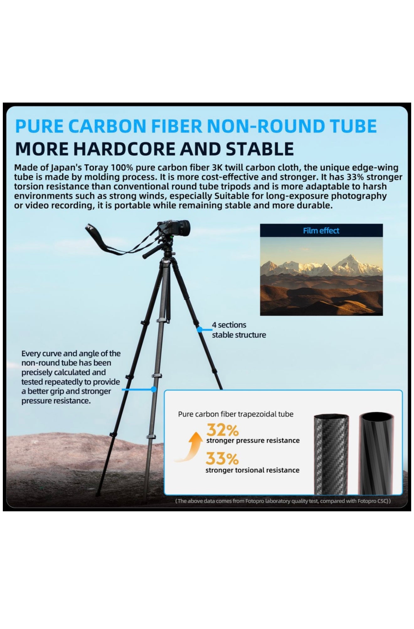 The Fotopro Origin Plus Heavy-Duty Fluid Video Tripod Stand (Origin Plus + MH-6A Pro) is a premium, travel-friendly video camera tripod stand designed for professional videographers, filmmakers, and content creators who demand maximum stability in a compact, portable form. Crafted from 100% Japan Toray 3K carbon fiber using a unique non-round tube design, it offers 33.3% more compact storage while delivering superior stability, even in challenging environments like strong winds or uneven ground.