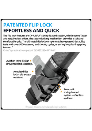 Flexible Height & Angle Shooting: With a maximum height of 1535mm (60.43 inches) and a minimum height of 176mm (6.93 inches), you can achieve high, low, and creative angle shots without limitation. The patented flip lock system enables quick setup with minimal effort, tested for durability through over 5000 opening and closing cycles.