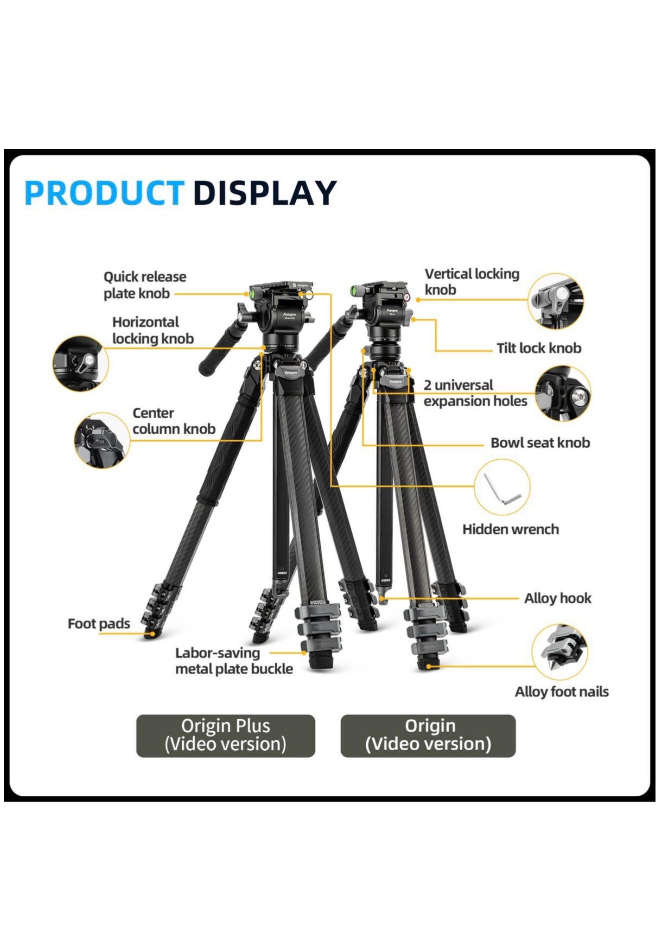 Perfect for travel videography, commercial shoots, sports coverage, wildlife filming, and short-form video creation, the Fotopro Origin Plus Video Tripod is your reliable, all-in-one solution for capturing stable, cinematic footage anywhere.