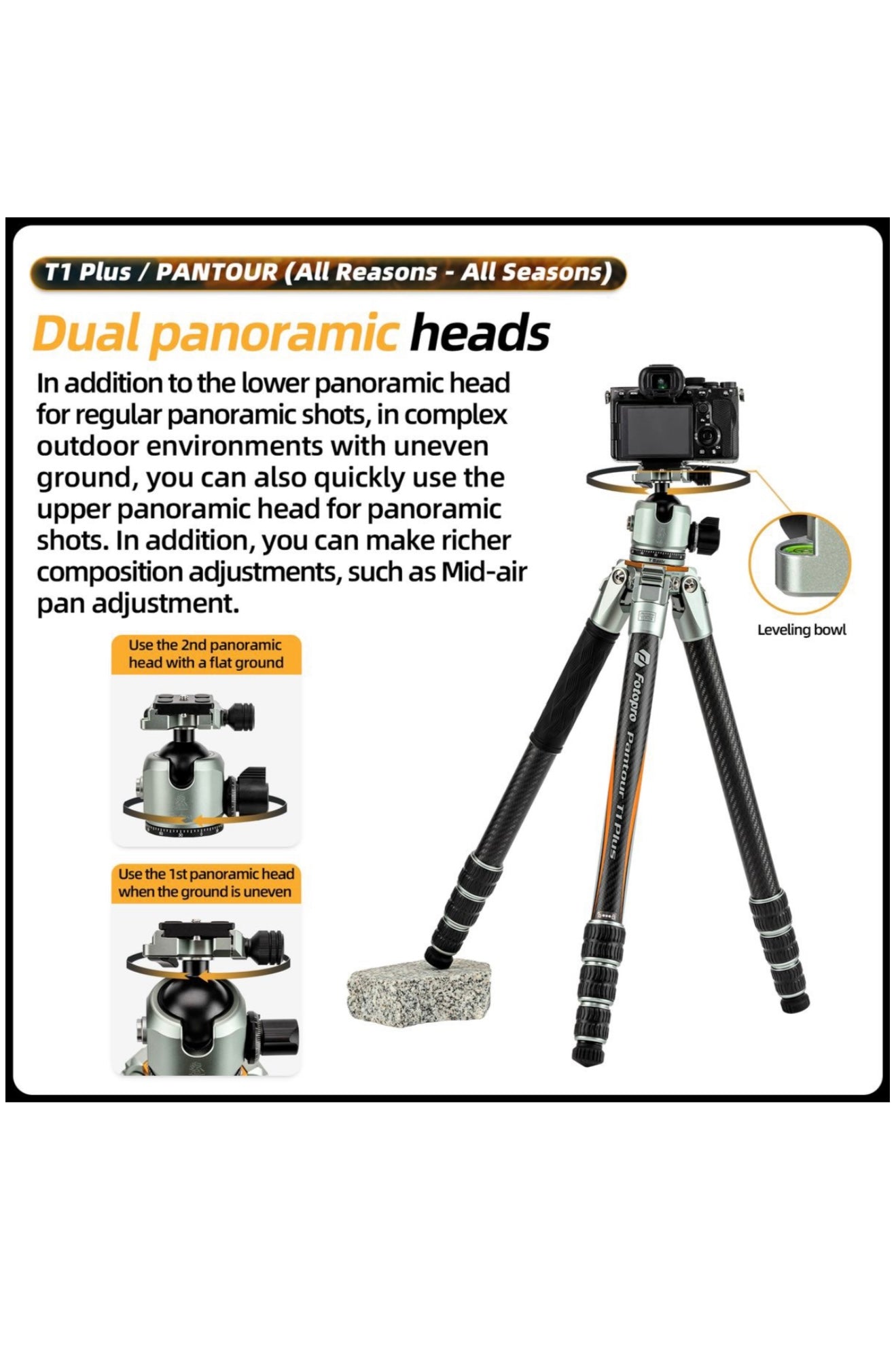 Dual Panoramic Heads & Multi-Angle Shooting: Featuring dual panoramic heads, the tripod enables smooth horizontal, vertical, mid-air, and pitch adjustments-even on uneven ground. Perfect for panoramic landscapes, wildlife tracking, and creative outdoor compositions.