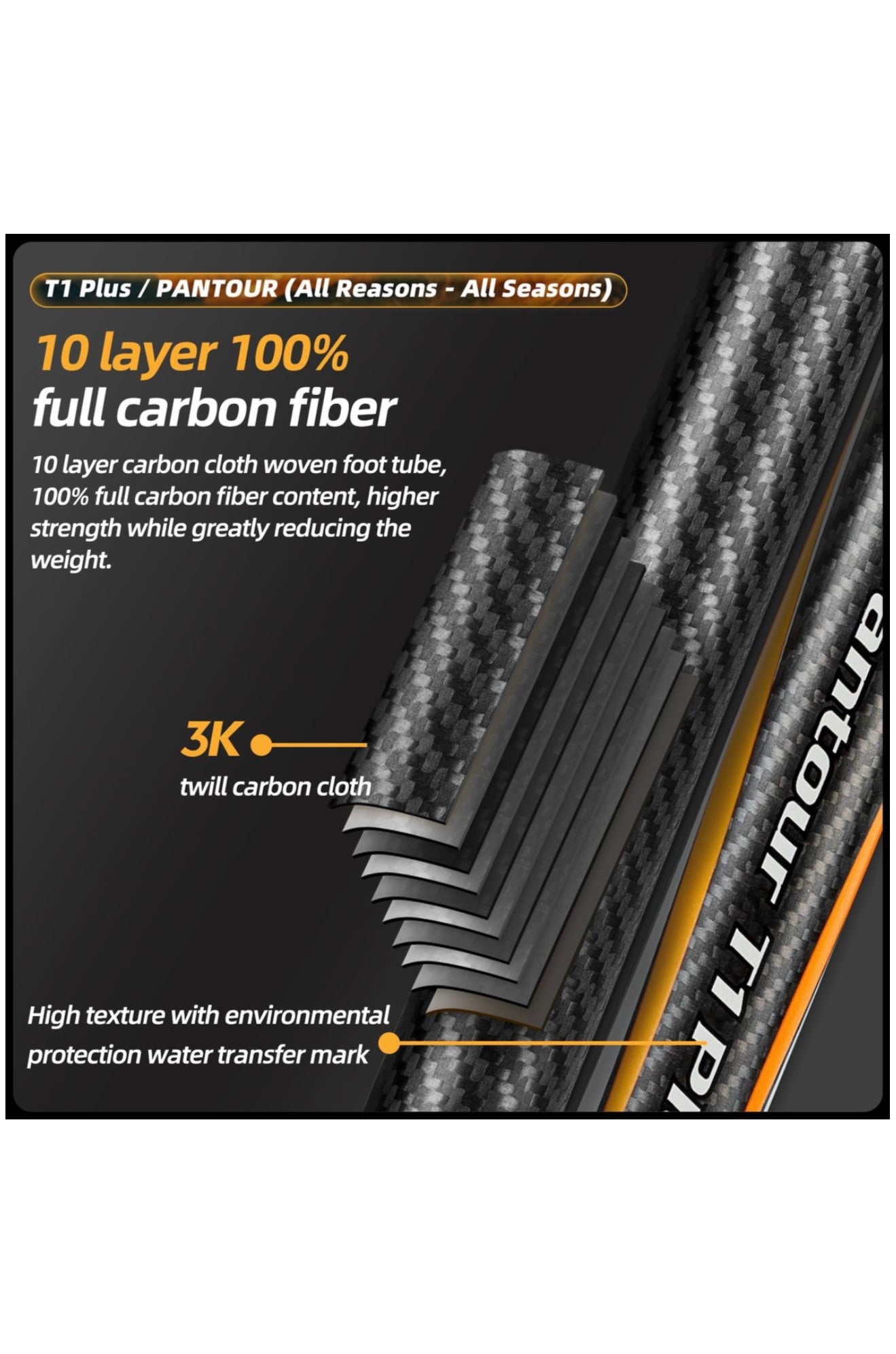 Advanced Carbon Fiber Construction: The 10-layer 100% carbon fiber tubing provides higher strength while significantly reducing weight, making it easier to carry without compromising stability.