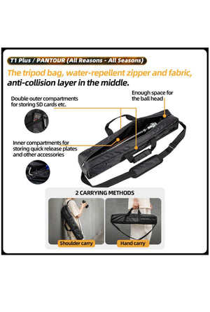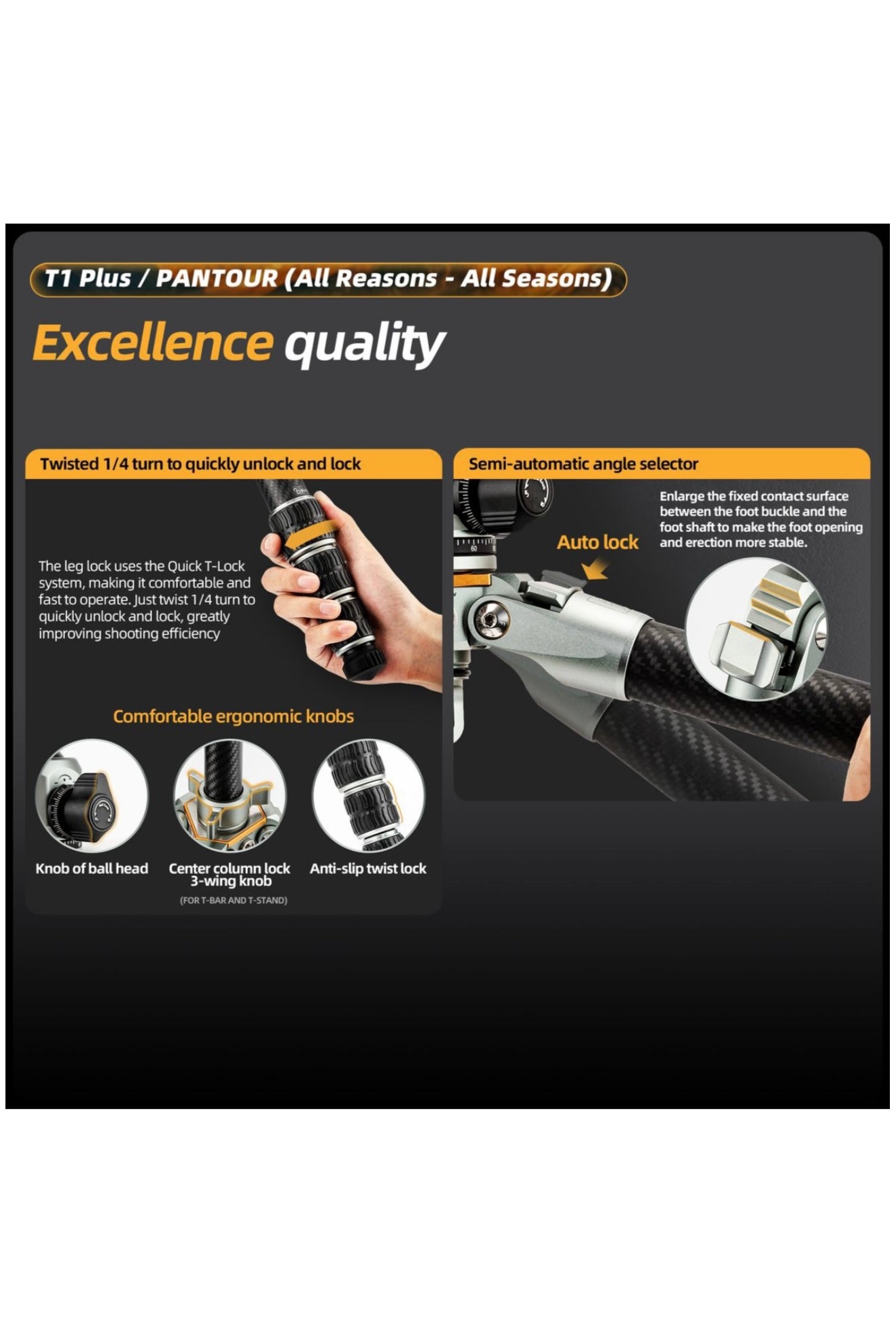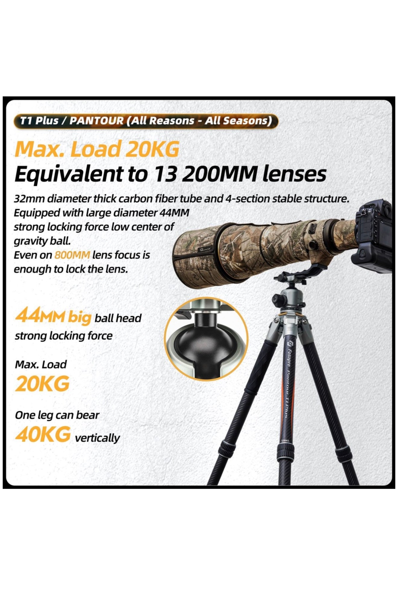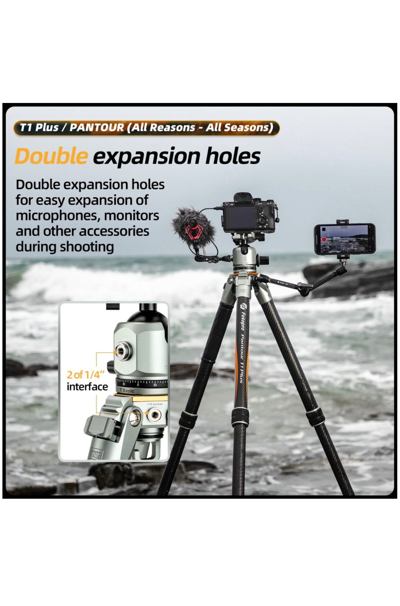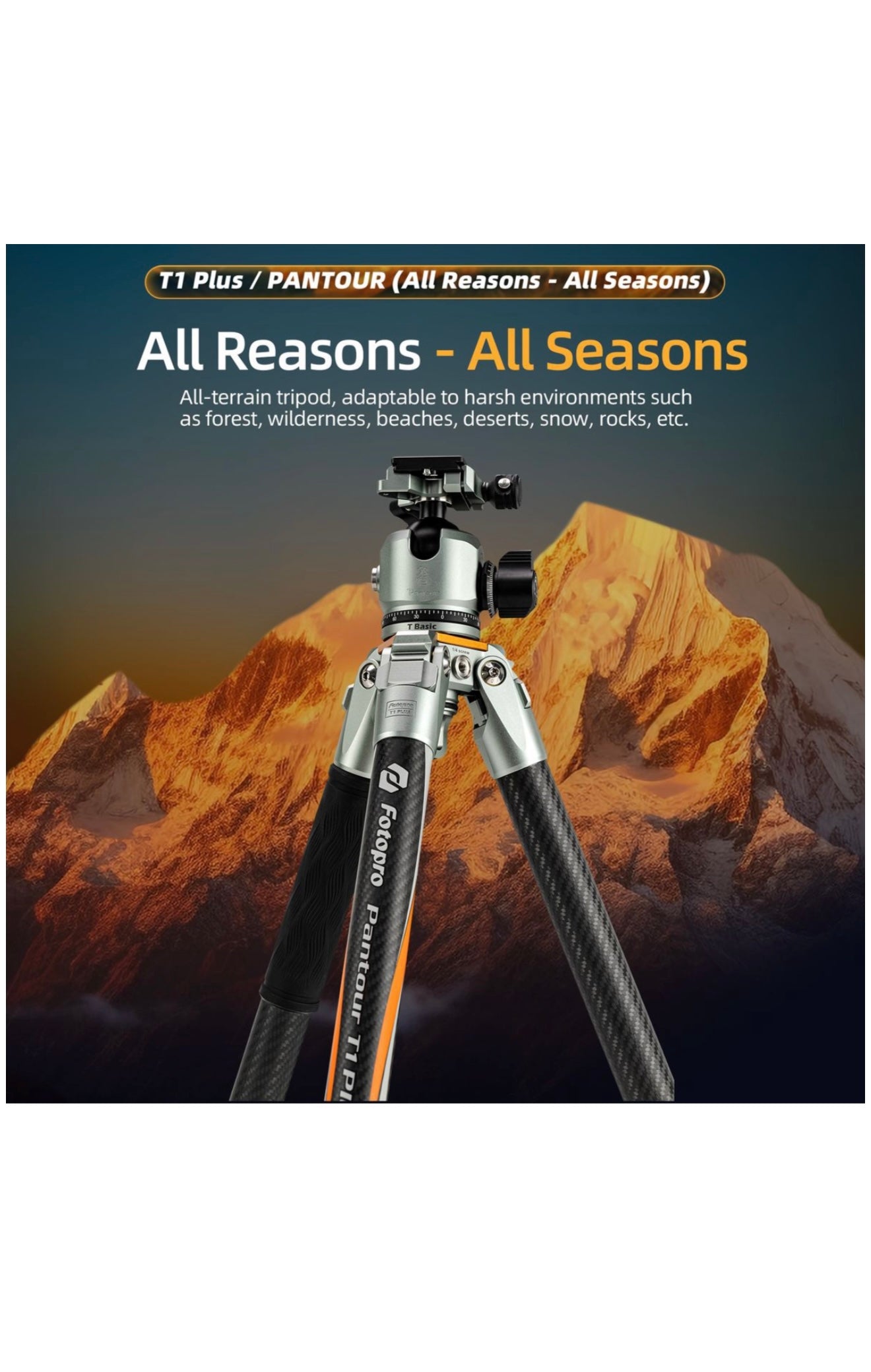 The Fotopro Lightweight All Terrain Camera Tripod Stand (T1 Plus + T-Bar + TH-1M) is engineered for all reasons, all seasons, and all terrains-designed to perform flawlessly in the harshest environments nature can offer. Built with premium 32mm diameter 10-layer carbon fiber tubes, this tripod combines extreme durability, lightweight portability, and professional-level stability, making it the ultimate companion for outdoor adventure photographers, videographers, and wildlife enthusiasts.