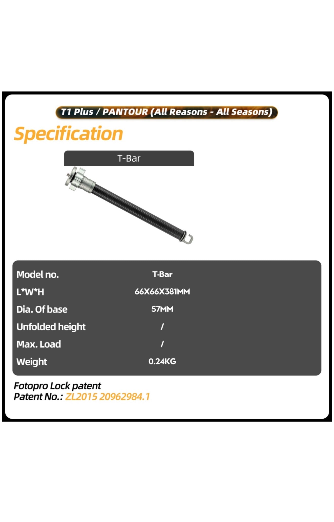 Fotopro Lightweight All Terrain Camera Tripod Stand - (T1 Plus+T-Bar+TH-1M)