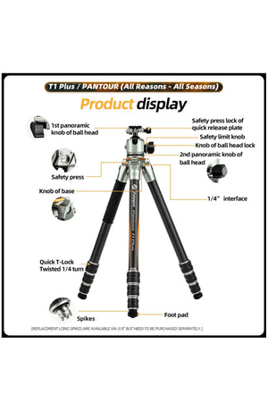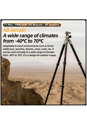 The Fotopro T1 Plus All Terrain Tripod Stand is more than just a tripod-it's a reliable partner for serious outdoor creators. Built to handle harsh climates, rugged landscapes, and heavy professional gear, it ensures your camera stays stable so you can focus on capturing the perfect shot-anywhere, anytime.