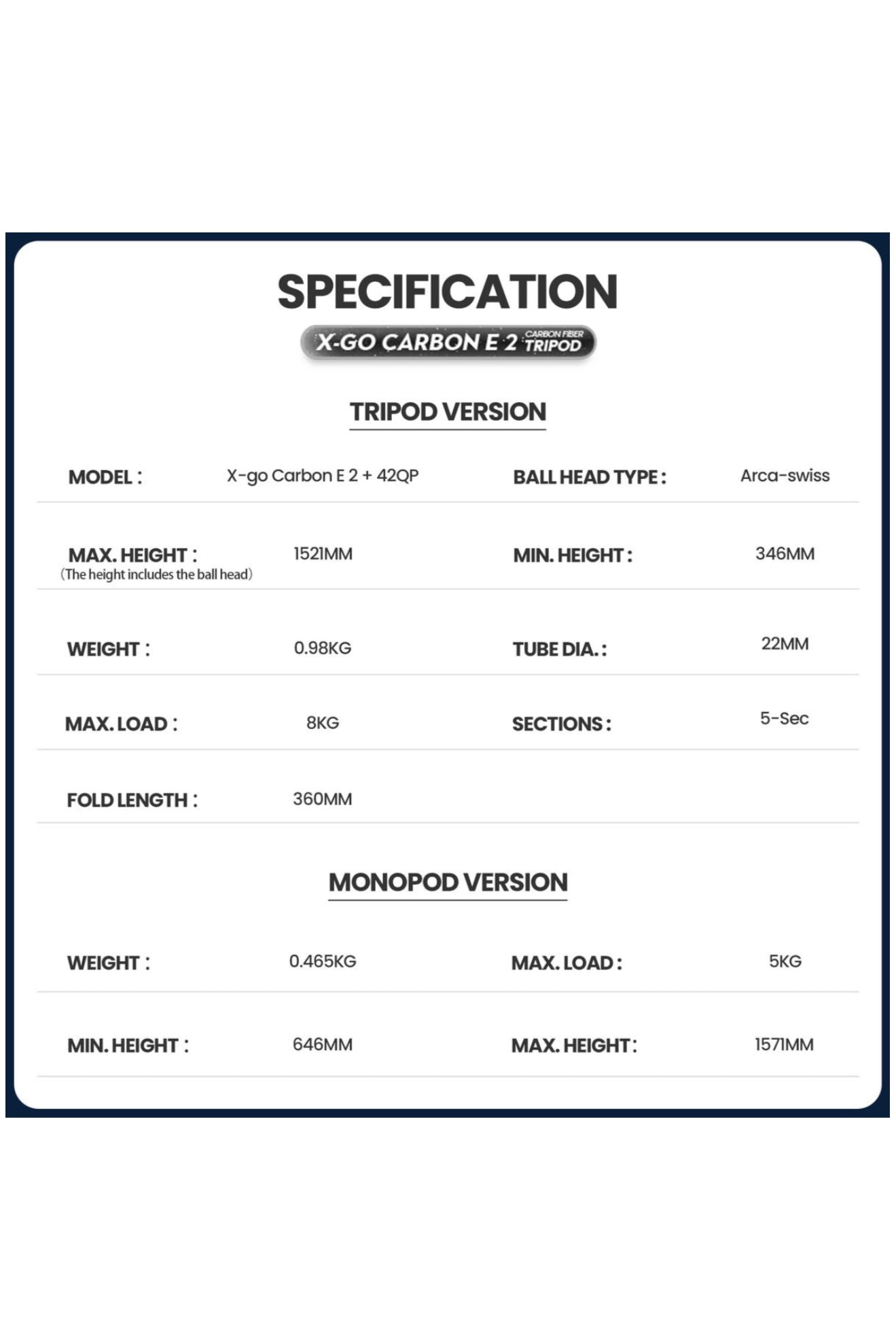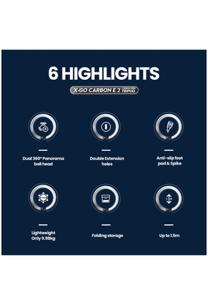 Take your photography to the next level with the X-go Carbon E+42QP, a professional-grade tripod stand designed to meet the demands of outdoor adventurers, travel photographers, and creative professionals alike. Lightweight, compact, and rugged, this camera tripod stand delivers everything you need for precise, stable shots in any environment - all without adding bulk to your kit.
