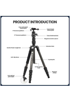 Weighing only 0.98kg, this carbon fiber tripod stand is incredibly easy to carry, making it perfect for travel, hikes, and on-location shoots. The folded length of 360mm allows it to fit into backpacks or luggage without hassle.