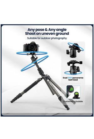 Use it as a tripod stand, monopod, or for inverted shooting to capture low angles and creative perspectives. Ideal for time-lapse, bird photography, and macro work, this tripod does it all - and does it well.