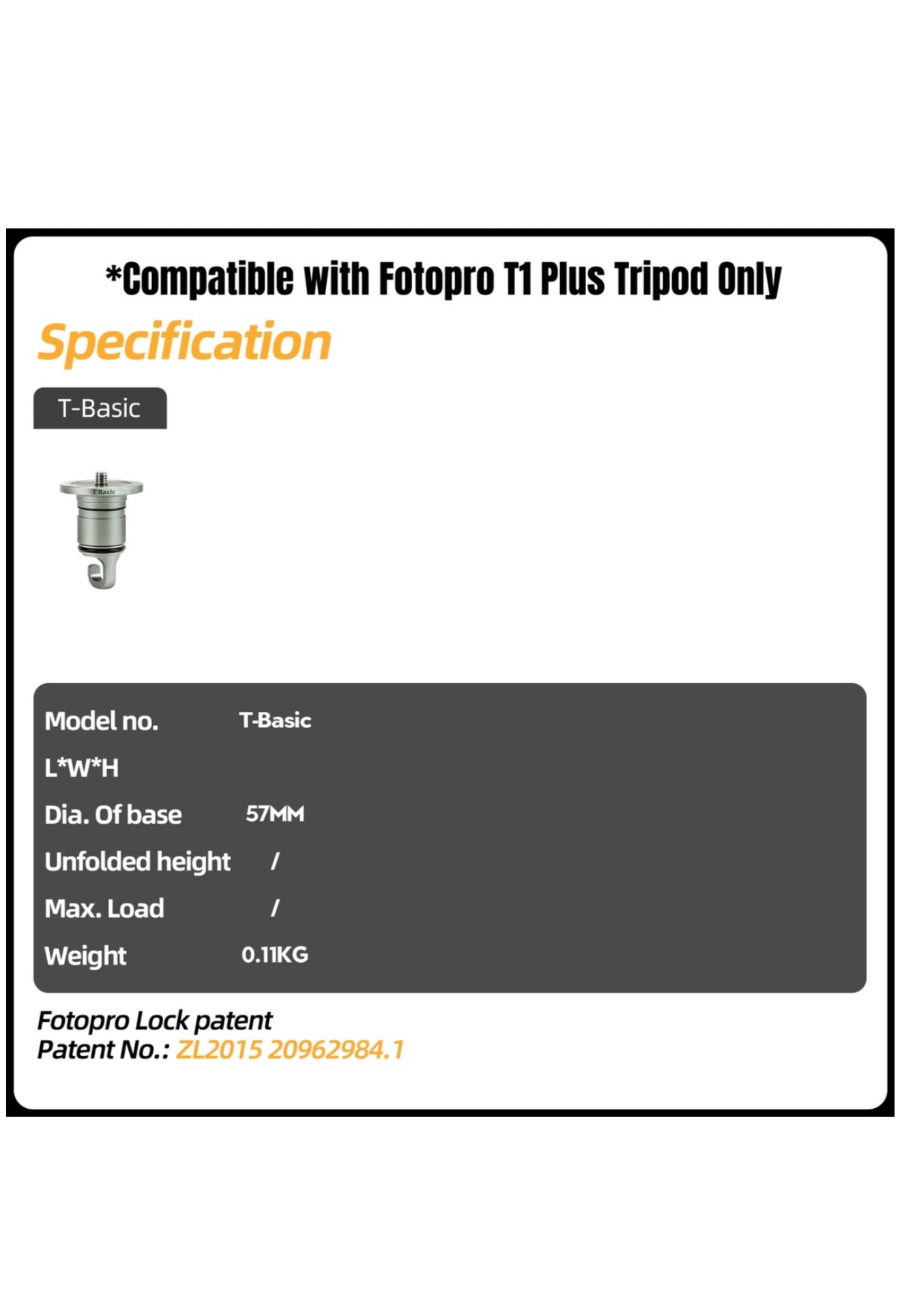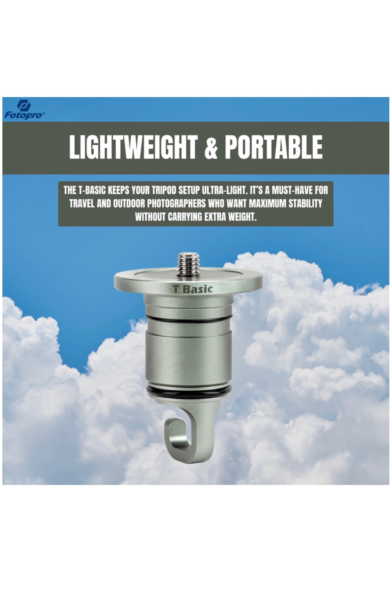 Seamless Compatibility: Designed exclusively for the Fotopro T1 Plus, this center column integrates perfectly with the tripod's modular system. It attaches securely with a quick-swap mechanism (tightening knob and safety release), locking into place for a precise, wobble-free fit. The T-Basic's durable build matches the T1 Plus's all-weather, carbon-fiber construction - ready for harsh outdoor conditions just like the tripod itself.