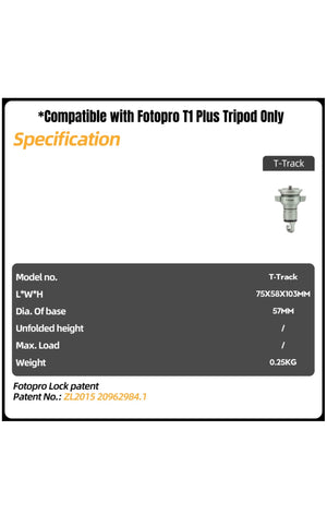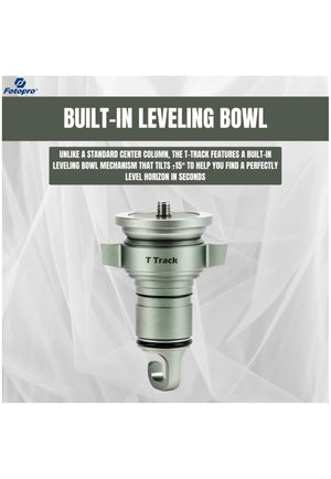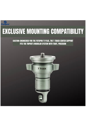 Elevate your photography and videography with the Fotopro T-Track Center Support, an exclusive center column designed for the Fotopro T1 Plus tripod. This innovative accessory replaces the standard center column with a short, non-extendable T-Track module that dramatically boosts stability and offers on-the-fly leveling. Built with metal components, the T-Track Center Support connects securely to the T1 Plus tripod base, providing a rock-solid platform for your camera gear in any environment. Its built-in leveling bowl allows you to easily adjust your camera's horizon without fiddling with tripod legs, making it ideal for shooting on uneven terrain. With a sleek locking mechanism and integrated weight hook for added steadiness, the T-Track transforms your T1 Plus into a versatile all-terrain support system ready for landscape photography, wildlife telephoto shots, and smooth video panning.