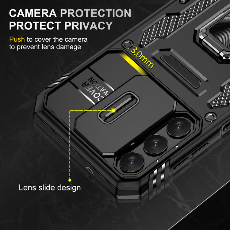 The CellTime Kejiang Camshield Cover is a premium protective accessory designed for your smartphone. This rugged cover offers a perfect blend of style, durability, and functionality, ensuring your device remains safe and stylish at all times.