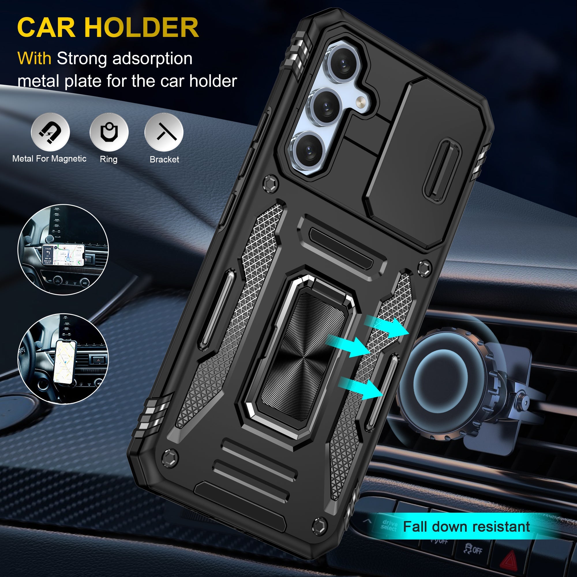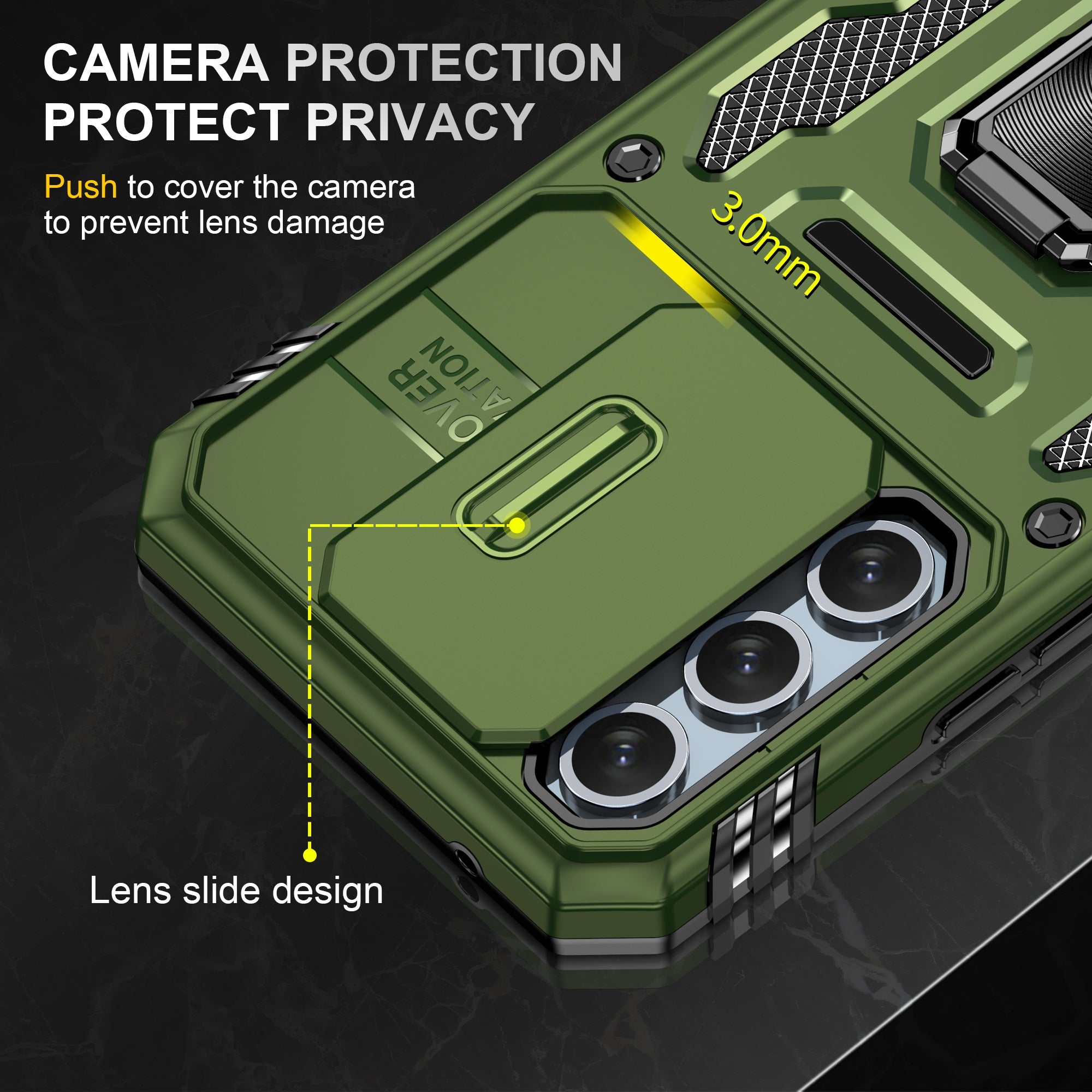 The CellTime Kejiang Camshield Cover is a premium protective accessory designed for your smartphone. This rugged cover offers a perfect blend of style, durability, and functionality, ensuring your device remains safe and stylish at all times.