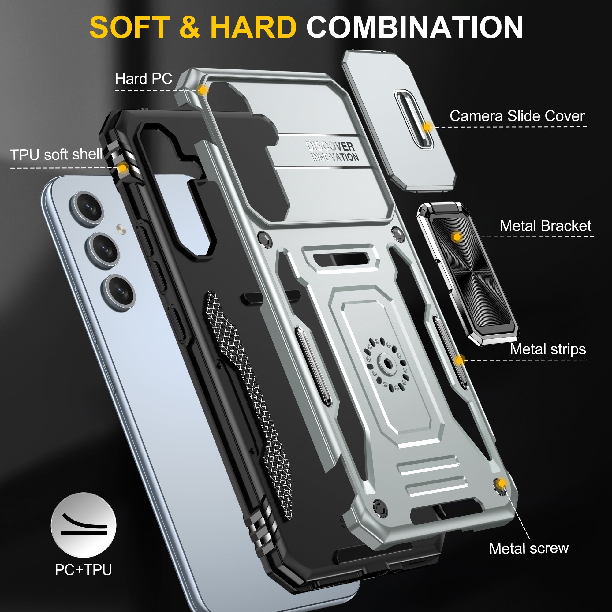The standout feature of the CellTime Kejiang Camshield cover is its shockproof and tough build. Engineered with high-quality materials, including a combination of impact-resistant polycarbonate and flexible TPU (thermoplastic polyurethane), this cover offers excellent protection against accidental drops, bumps, and everyday wear and tear. The advanced shock-absorption technology disperses the force of impacts, safeguarding your device from potential damage.