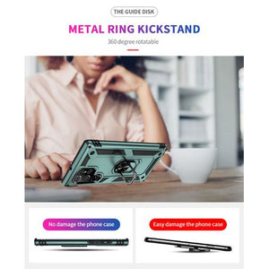 Built-in Dual-purpose Kickstand - A metal ring kickstand can rotate 360 degrees, easy to rotate and sturdy on the case. Built-in kickstand gives you the convenience to watch videos and movies hands-free with desired comfort and stability. Besides, built-in metal magnetic sheet for stable adsorption, which can be directly adsorbed to the magnetic car mount holder. A metal plate can attach to magnetic car mount, no damage the phone case.