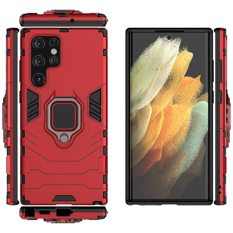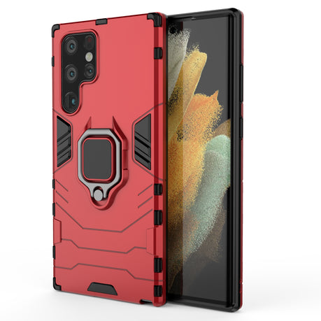 Shockproof Black Panther Magnetic Ring Stand Cover for Galaxy S22 Ultra