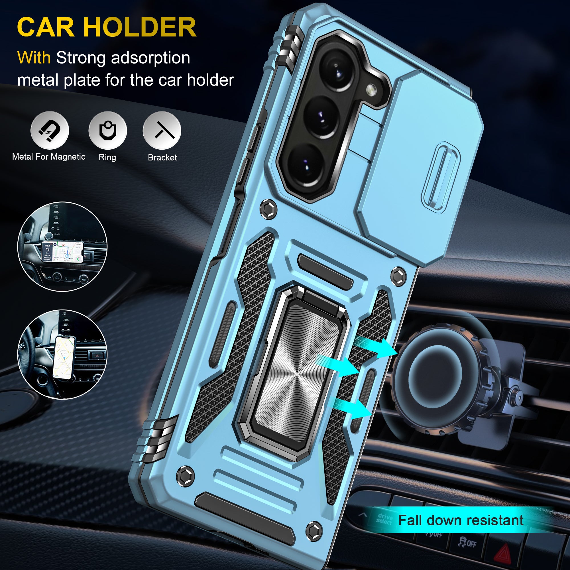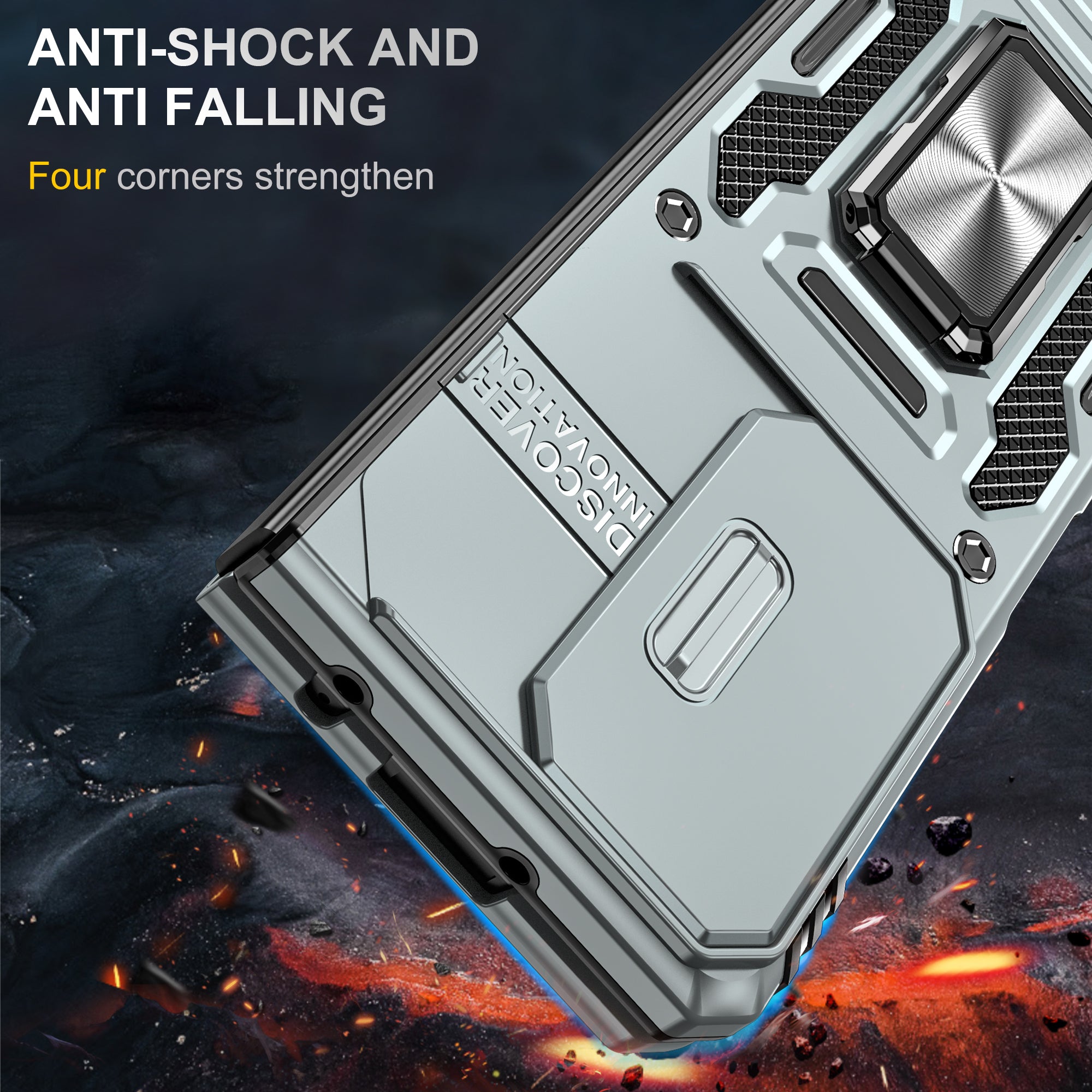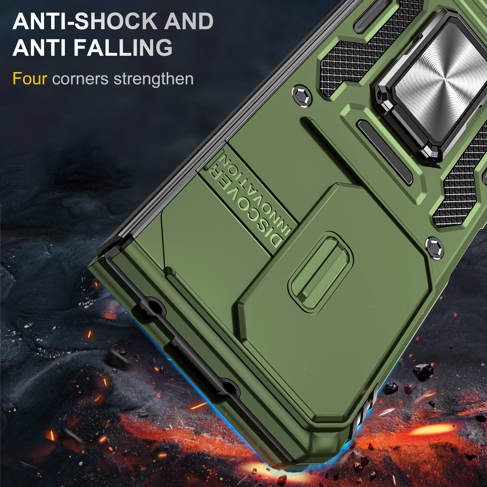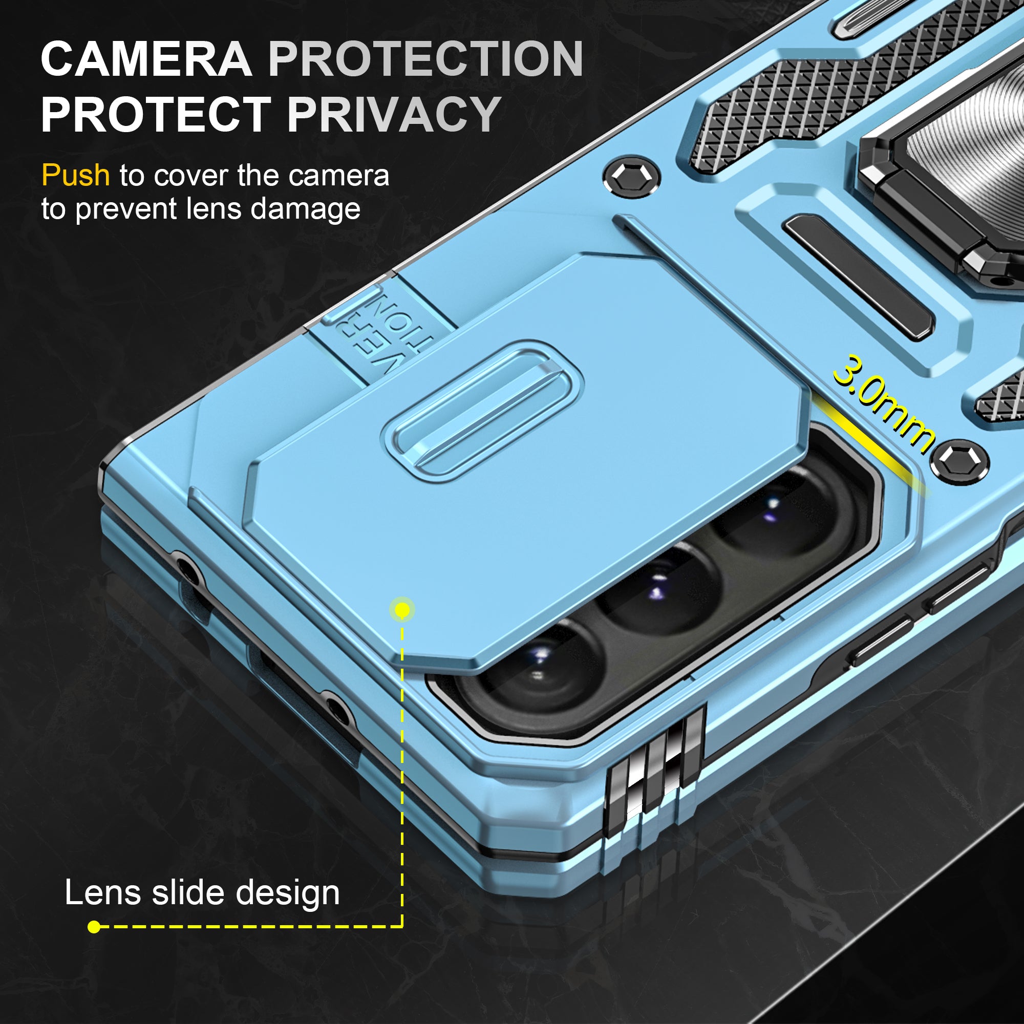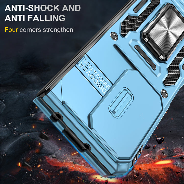 The CellTime Kejiang Camshield Cover is a premium protective accessory designed for your smartphone. This rugged cover offers a perfect blend of style, durability, and functionality, ensuring your device remains safe and stylish at all times.