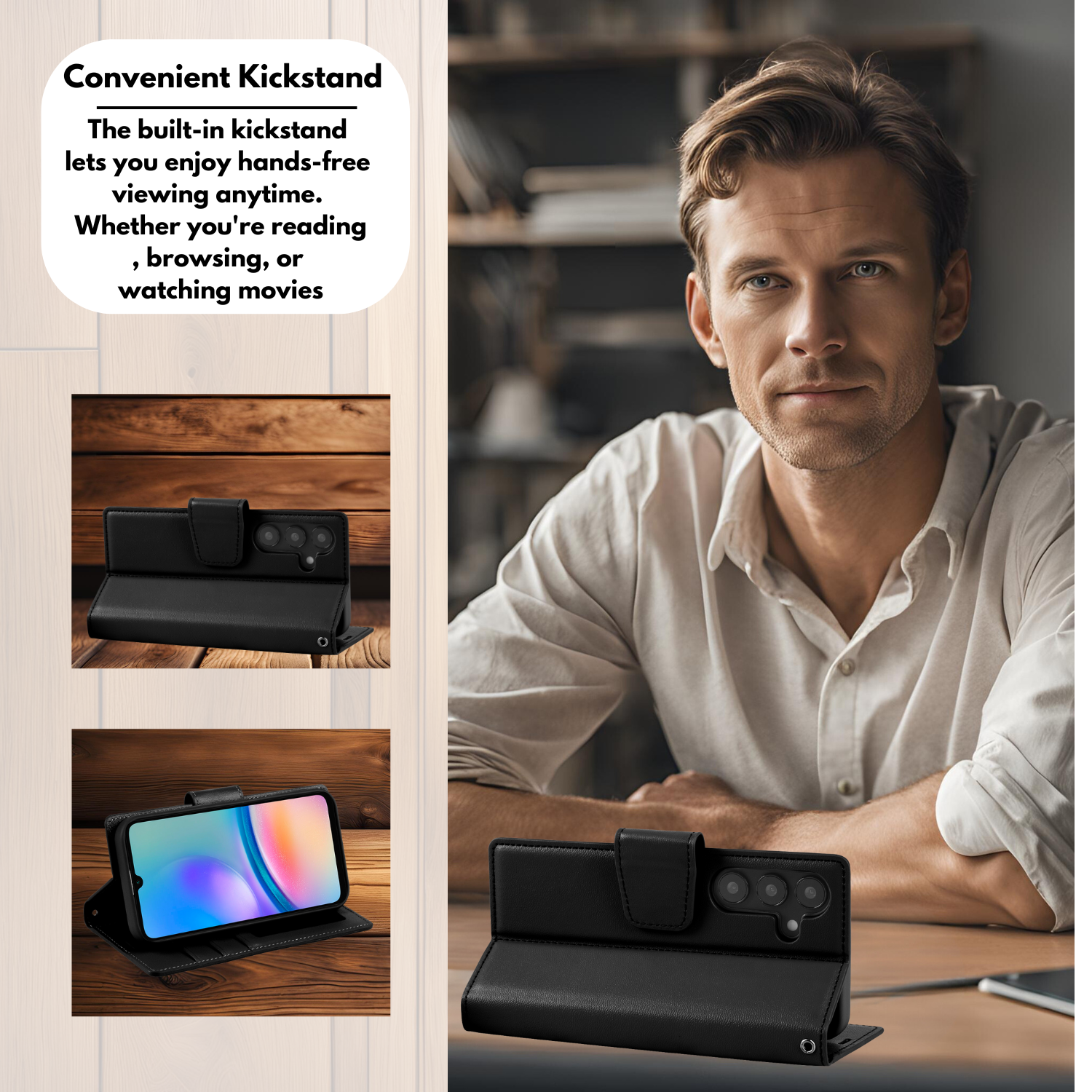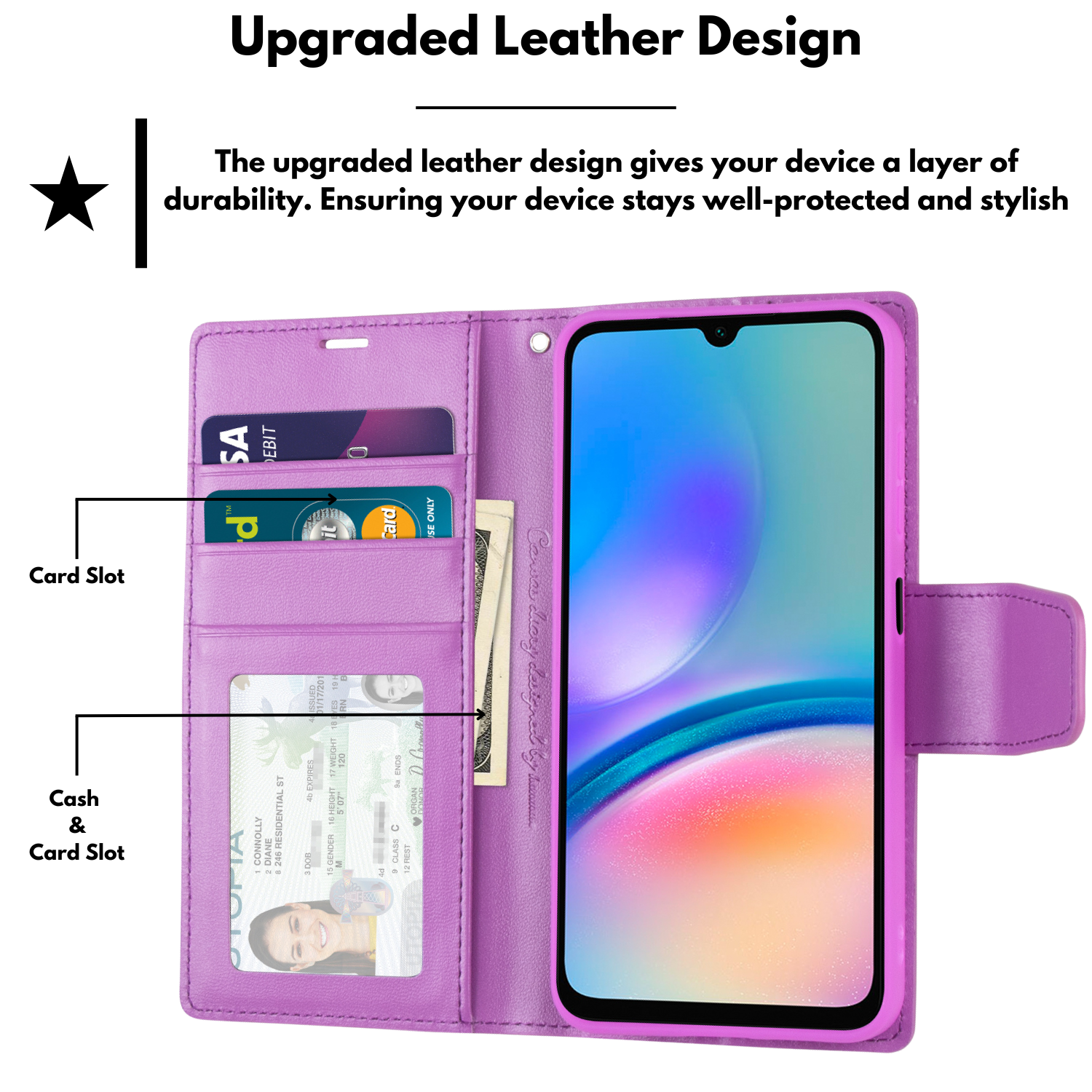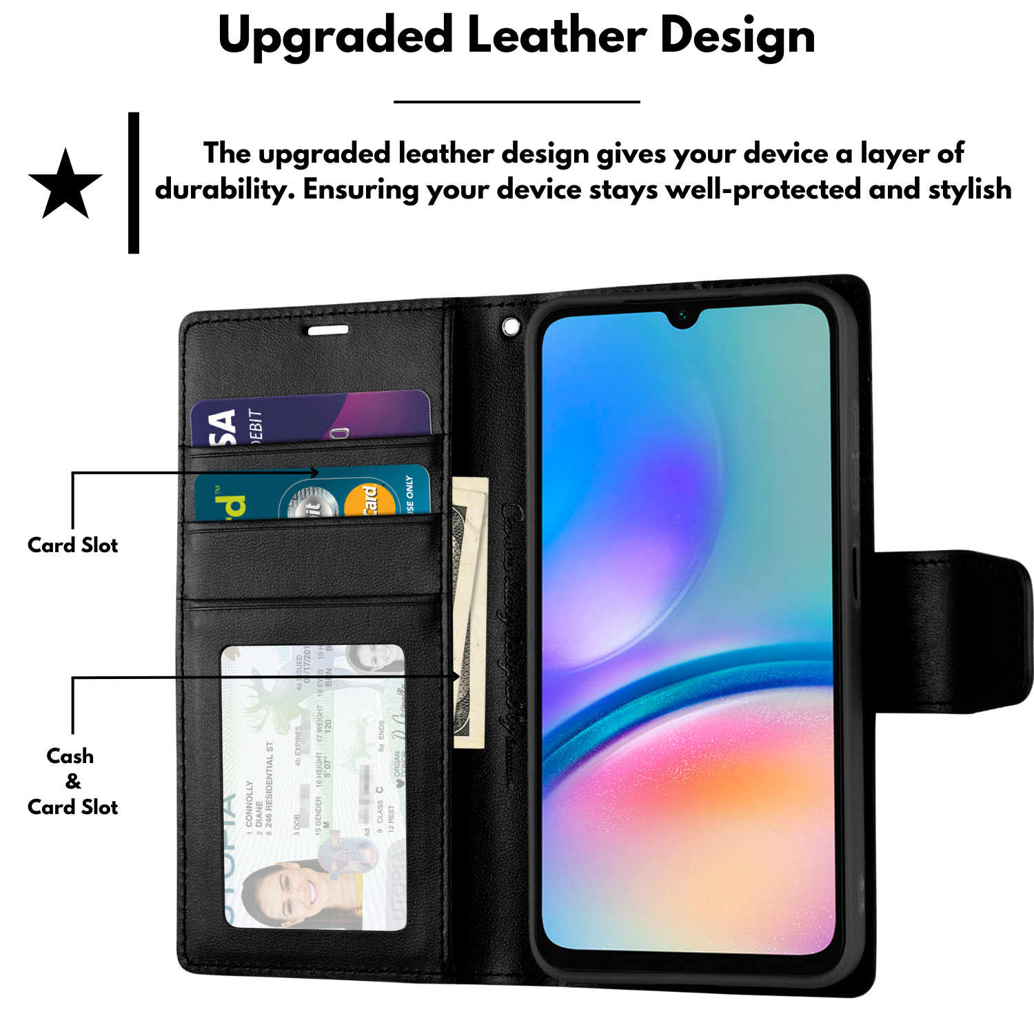 Upgraded Leather Design: The upgraded leather construction not only adds a touch of elegance but also provides an extra layer of durability to your Galaxy A05 / A05S. The leather is designed to withstand daily wear and tear, maintaining a sleek and stylish appearance while ensuring your device stays well-protected.