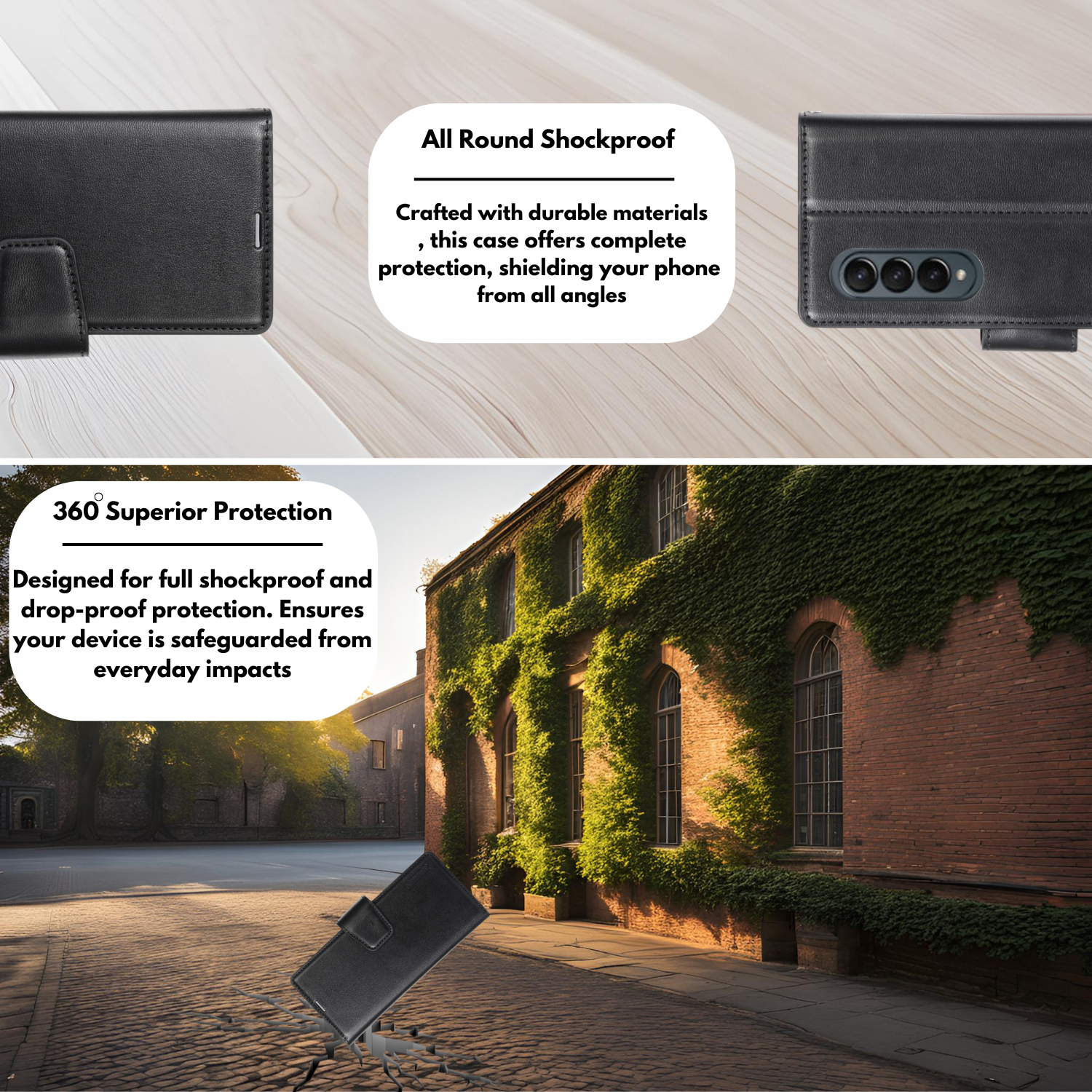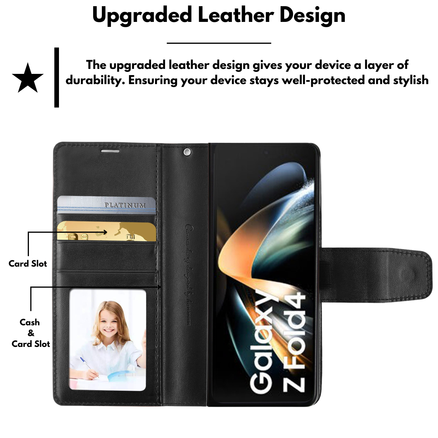 Upgraded Leather Design: The upgraded leather construction not only adds a touch of elegance but also provides an extra layer of durability to your Samsung Galaxy Z Fold 4. The leather is designed to withstand daily wear and tear, maintaining a sleek and stylish appearance while ensuring your device stays well-protected.