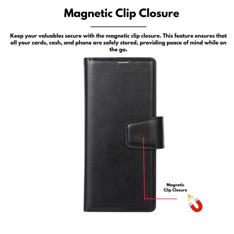 Magnetic Closure Clip: The magnetic clip closure ensures that all your valuables-phone, cards, and cash-are securely stored within the wallet. This magnetic lock provides a secure and easy way to keep everything in place, giving you peace of mind that your essentials are safe whether you're at work, traveling, or on the go.