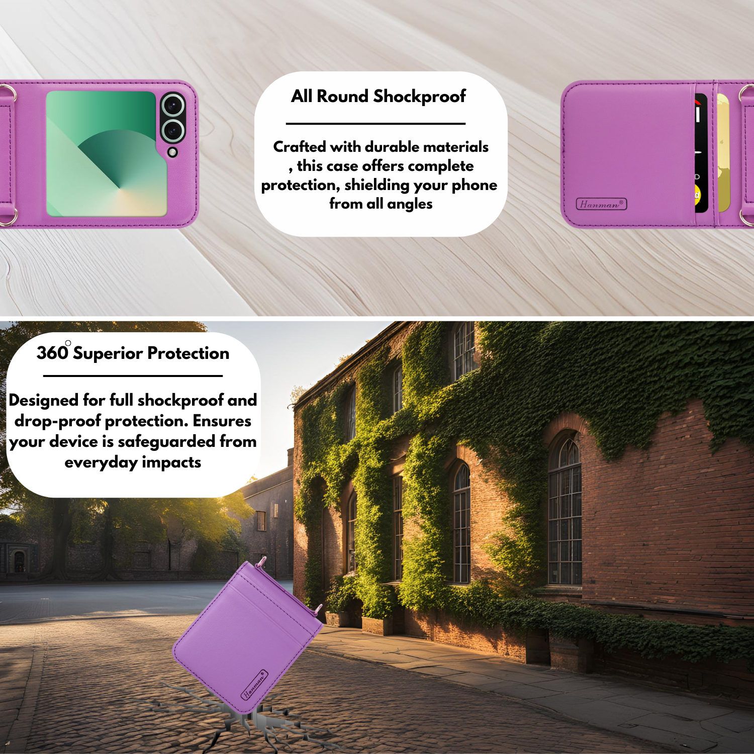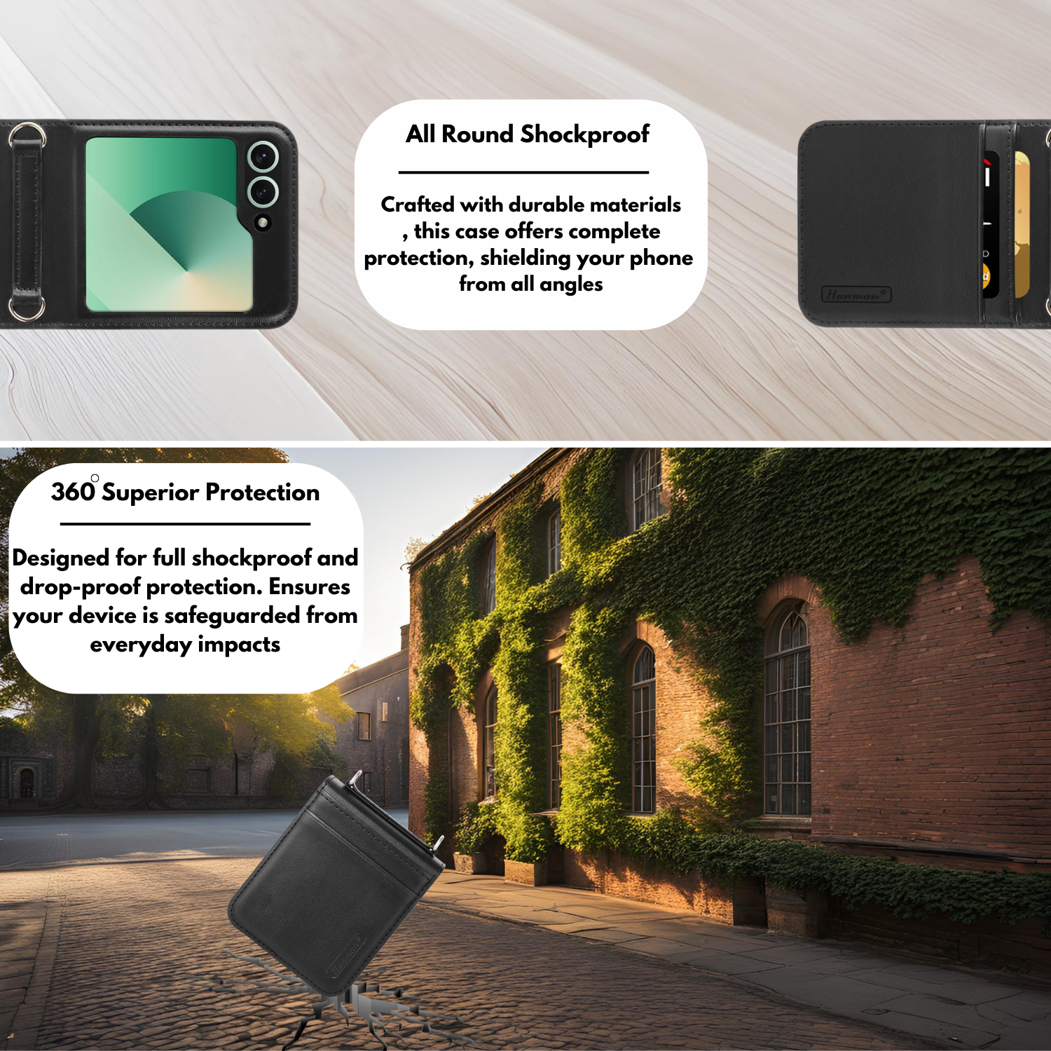 - 1 x Hanman Classic Hand Strap Flip Leather Wallet Cover for Galaxy Z Flip 6