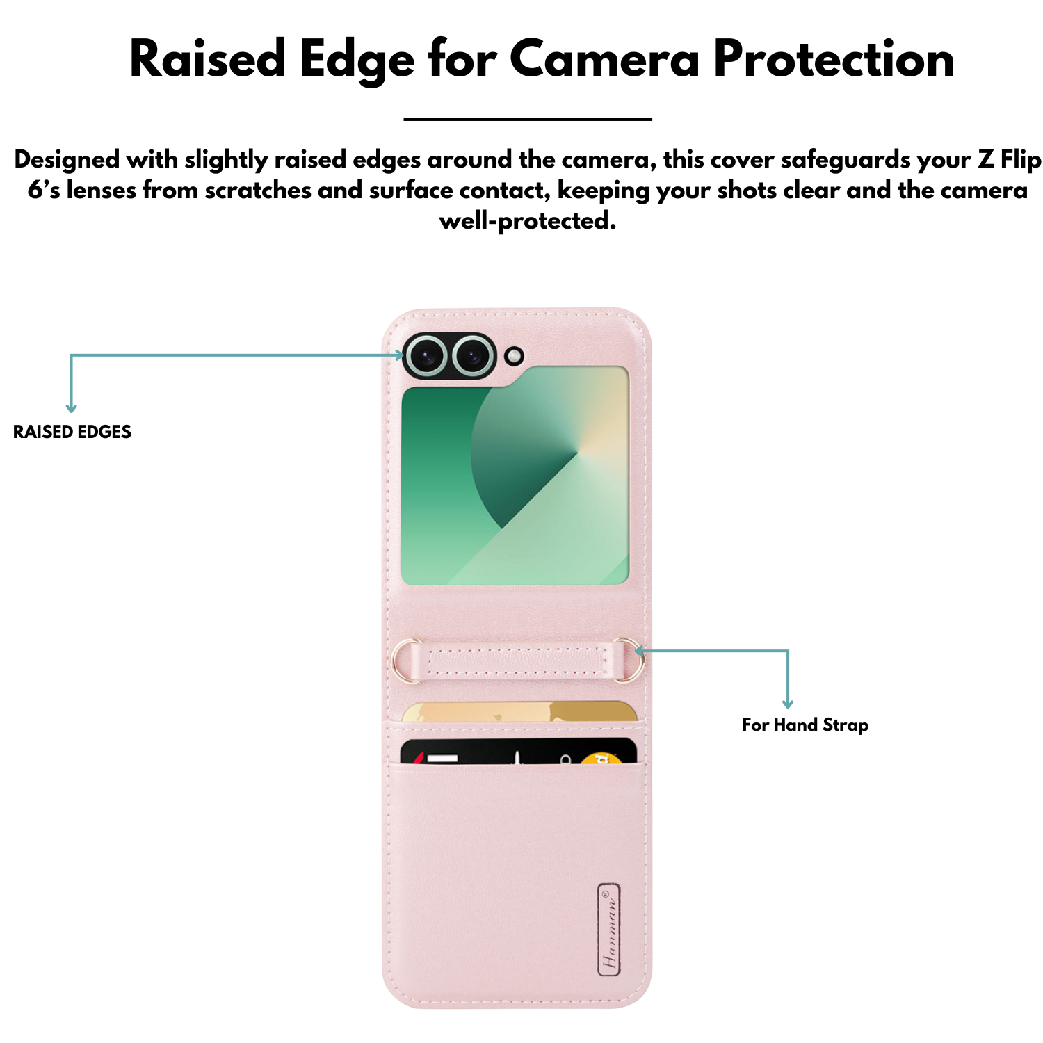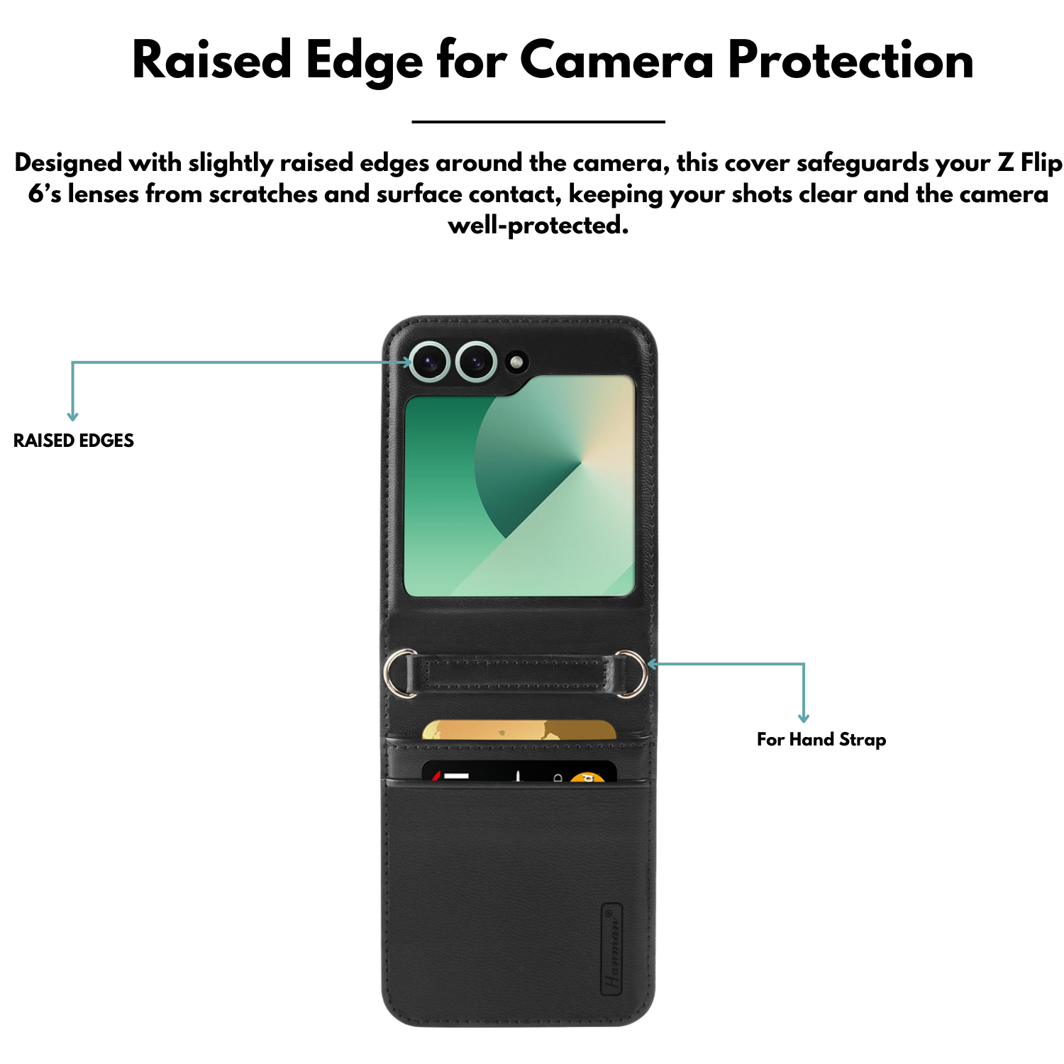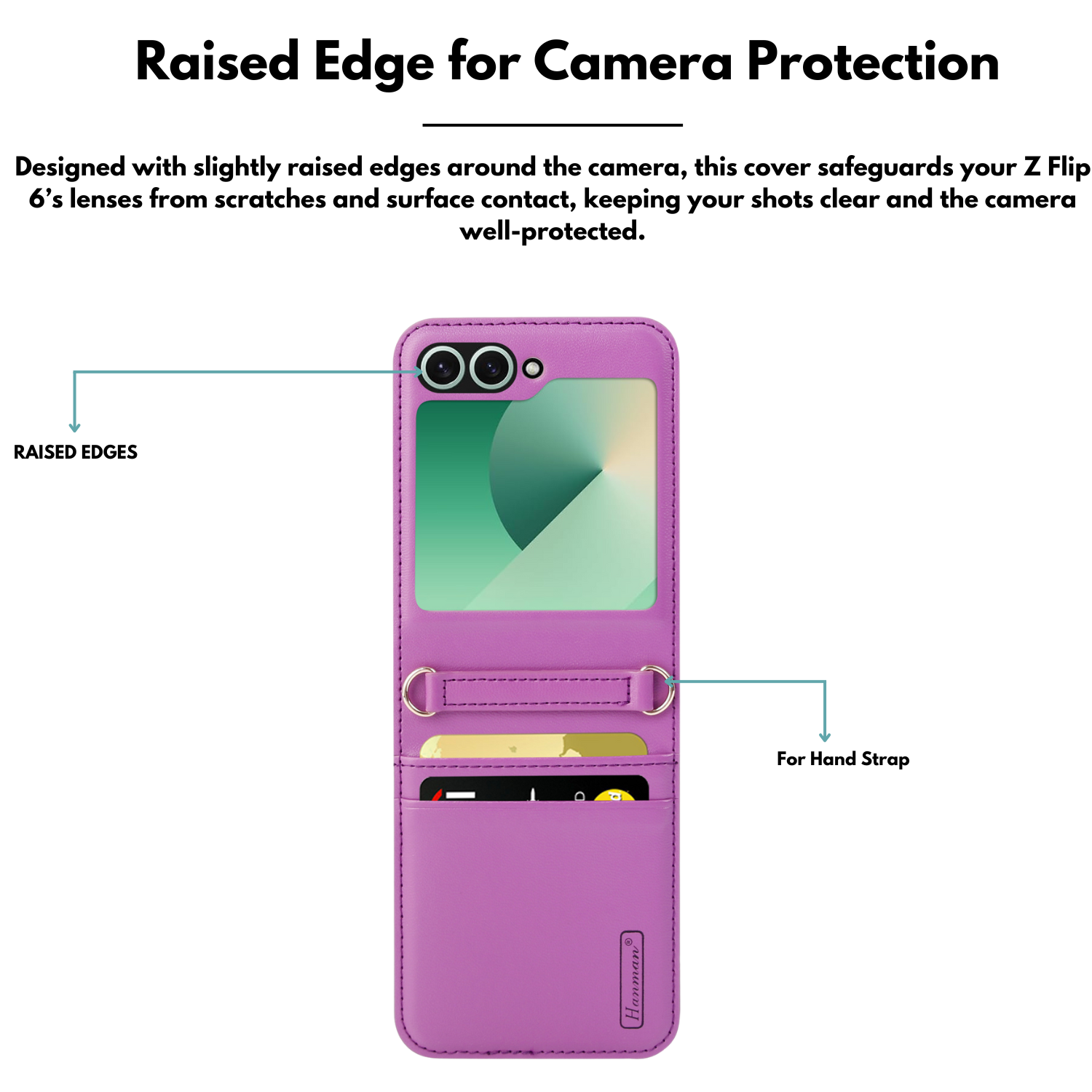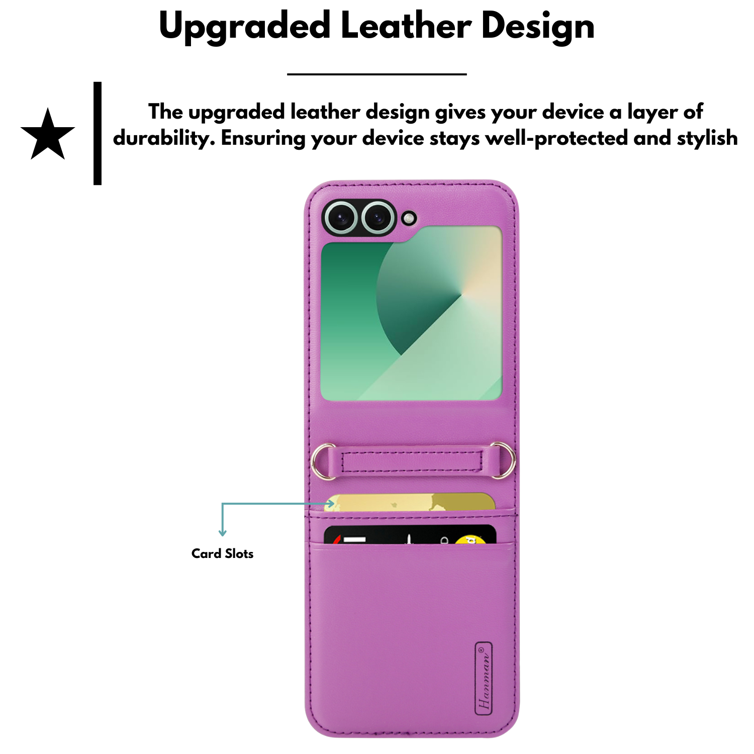 Hanman Classic Hand Strap Flip Leather Wallet Cover for Galaxy Z Flip 6