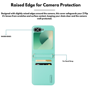 Compact Design with Flip Protection: Specifically designed for the Galaxy Z Flip 6, this wallet cover ensures that your device's flip feature remains protected and functional. Its compact design keeps it sleek and easy to carry while maintaining complete coverage.
